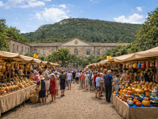L’Abbaye de Fontfroide devient le théâtre de Made in Occitanie, Un rendez-vous pour explorer le meilleur du fait ici mêlant gastronomie Occitanie – Sud de France, artisanat et création contemporaine. 10 000 visiteurs espérés. (photo IA)