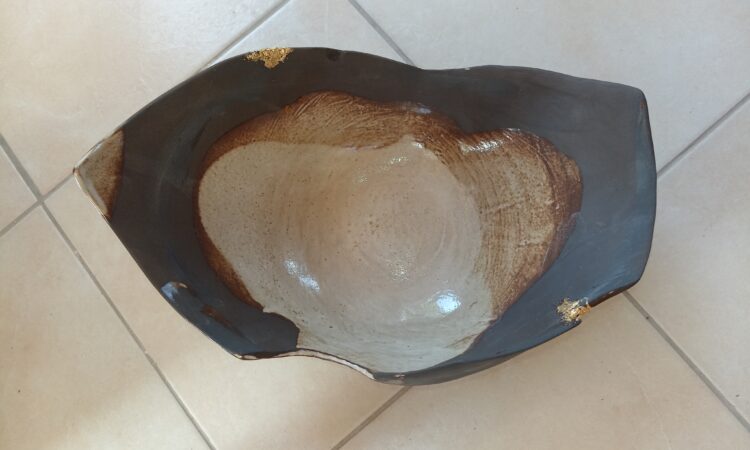 Contenant Forme Saladier, Grès Noir Et Blanc Mêlés