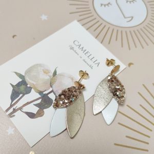 BOUCLES D’OREILLES CAMELLIA Blanches Dorées