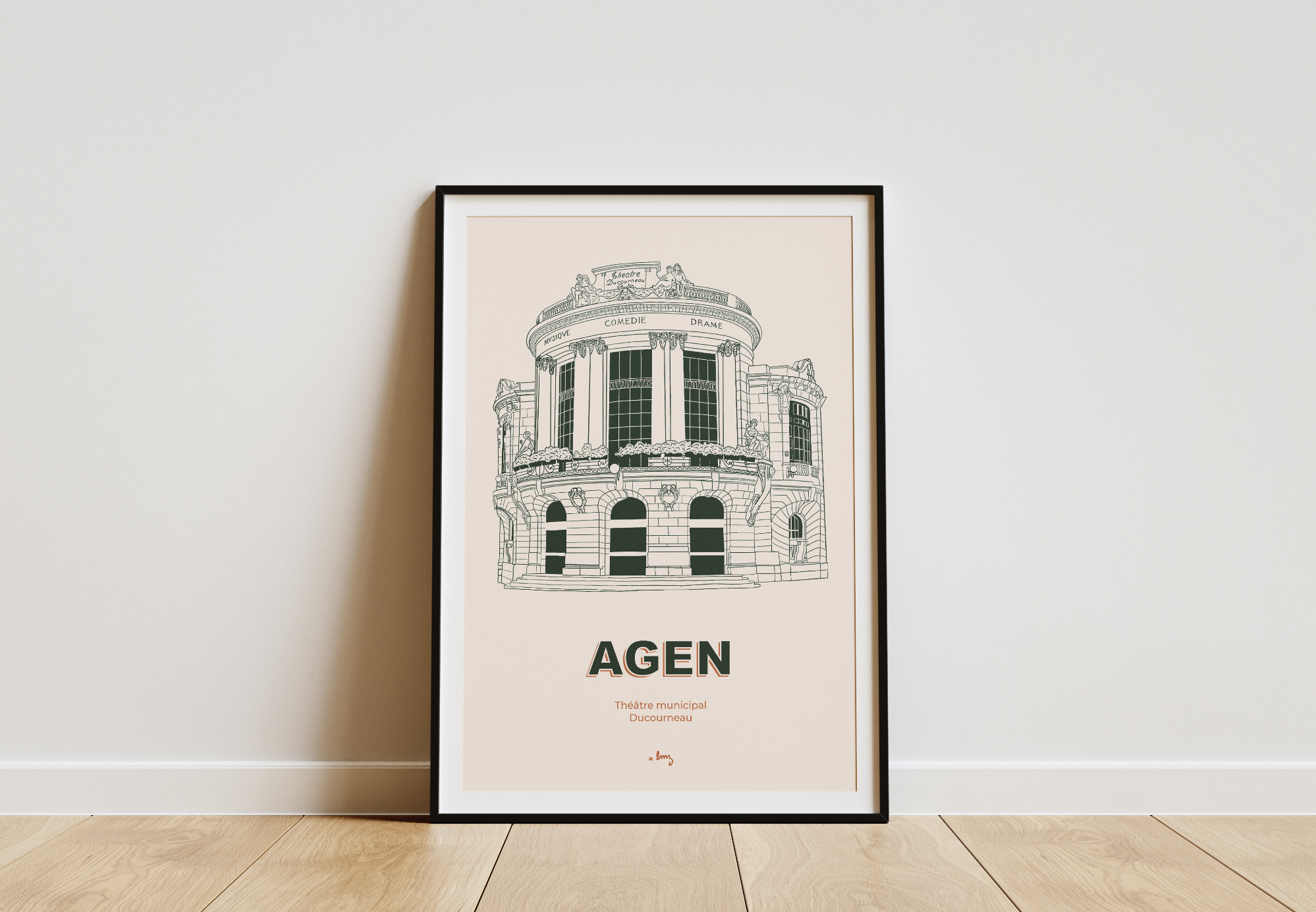 Agen – 47000 (vendu sans cadre) Illustrations disponibles en différents formats (A4, A3 et carte 13x13cm) Papier 300 gr Créé et imprimé à Albi. Made in Tarn.