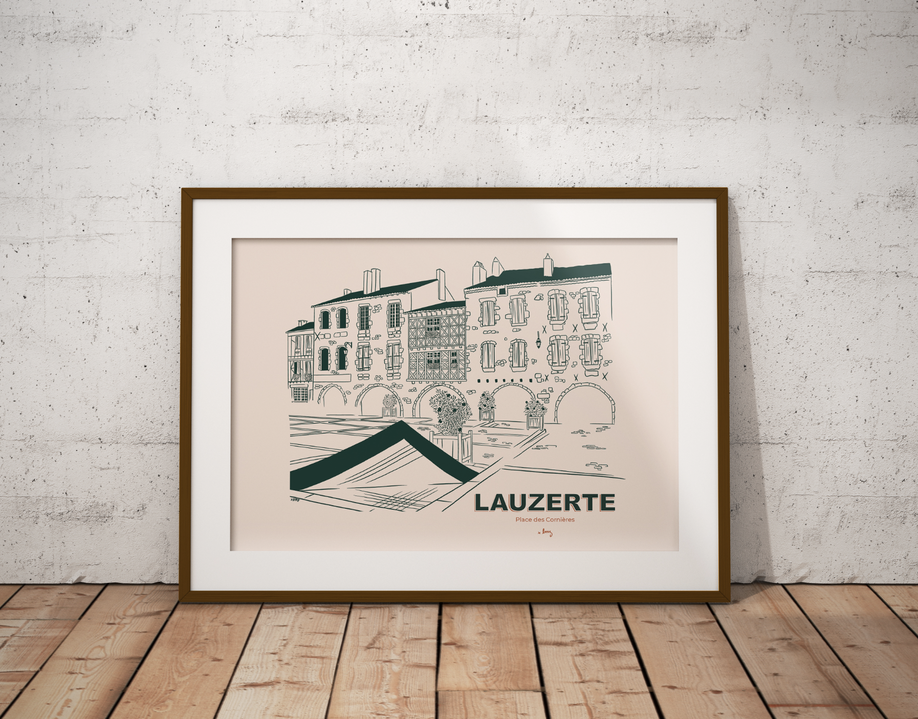Lauzerte – 82110 (vendu sans cadre) Illustrations disponibles en différents formats (A4, A3 et carte 13x13cm) Papier 300 gr Créé et imprimé à Albi. Made in Tarn.