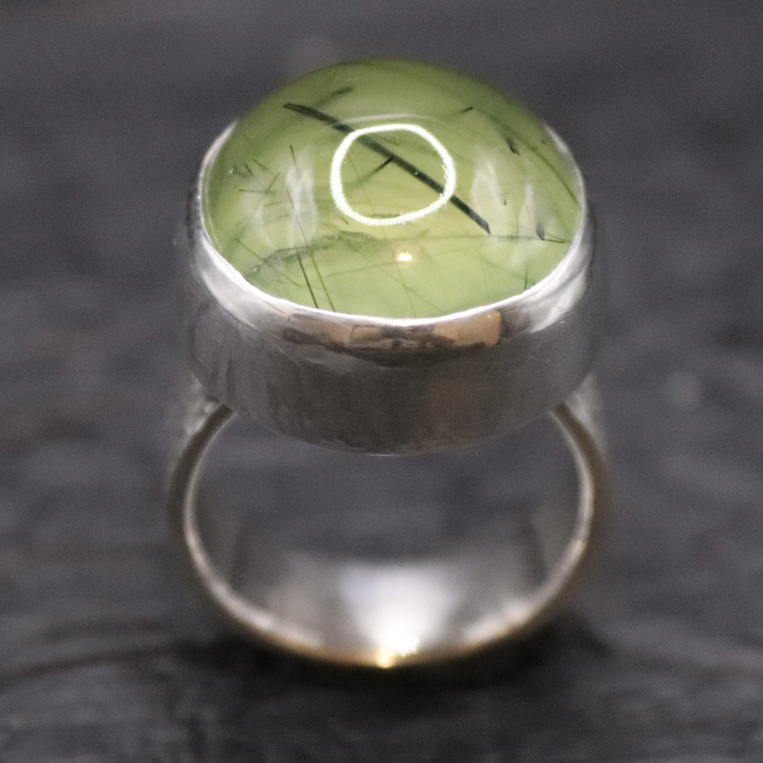 Bague en argent – Préhnite sertie – Finition brillante – Taille 55