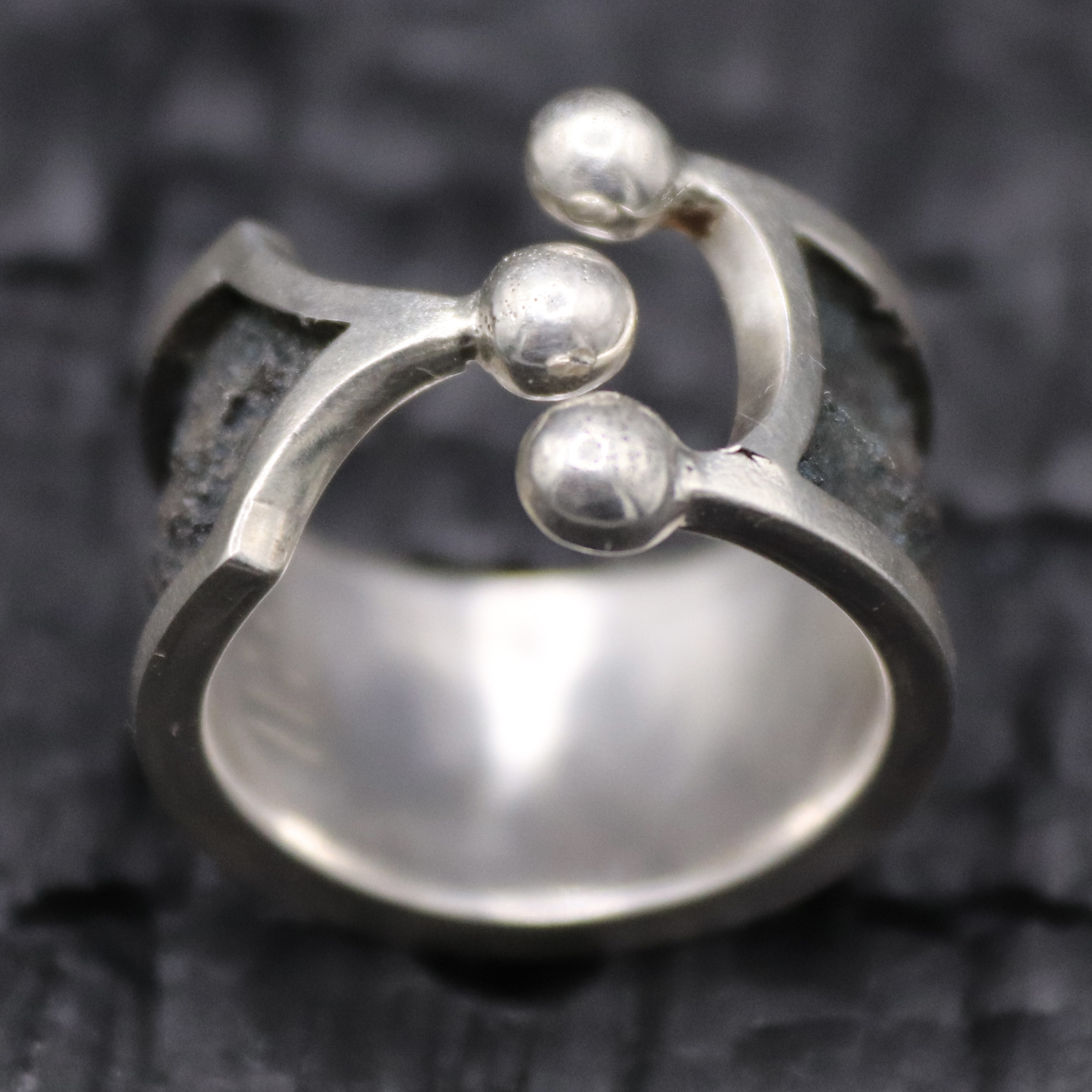 Bague ouverte en argent 950 et poussière d’argent oxydée – Pièce unique – Taille 51 à 54