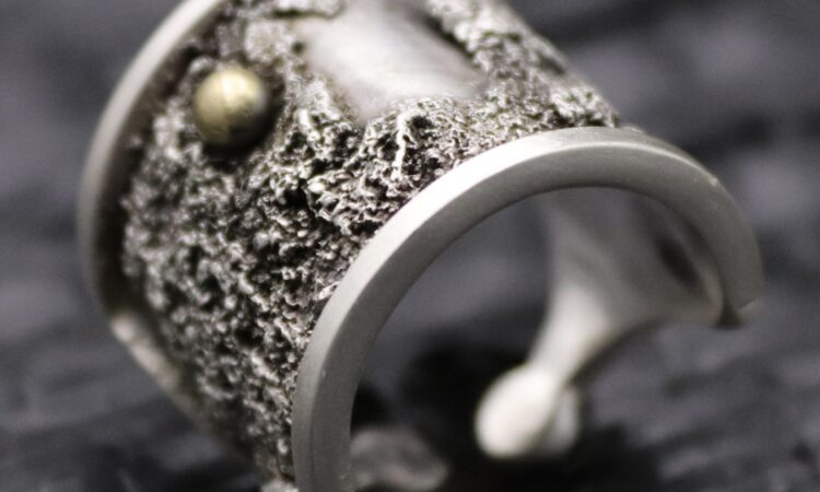 Bague ouverte en argent 950 et poussière d’argent oxydée – Pièce unique – Taille 51 à 54