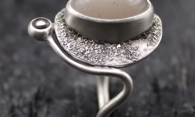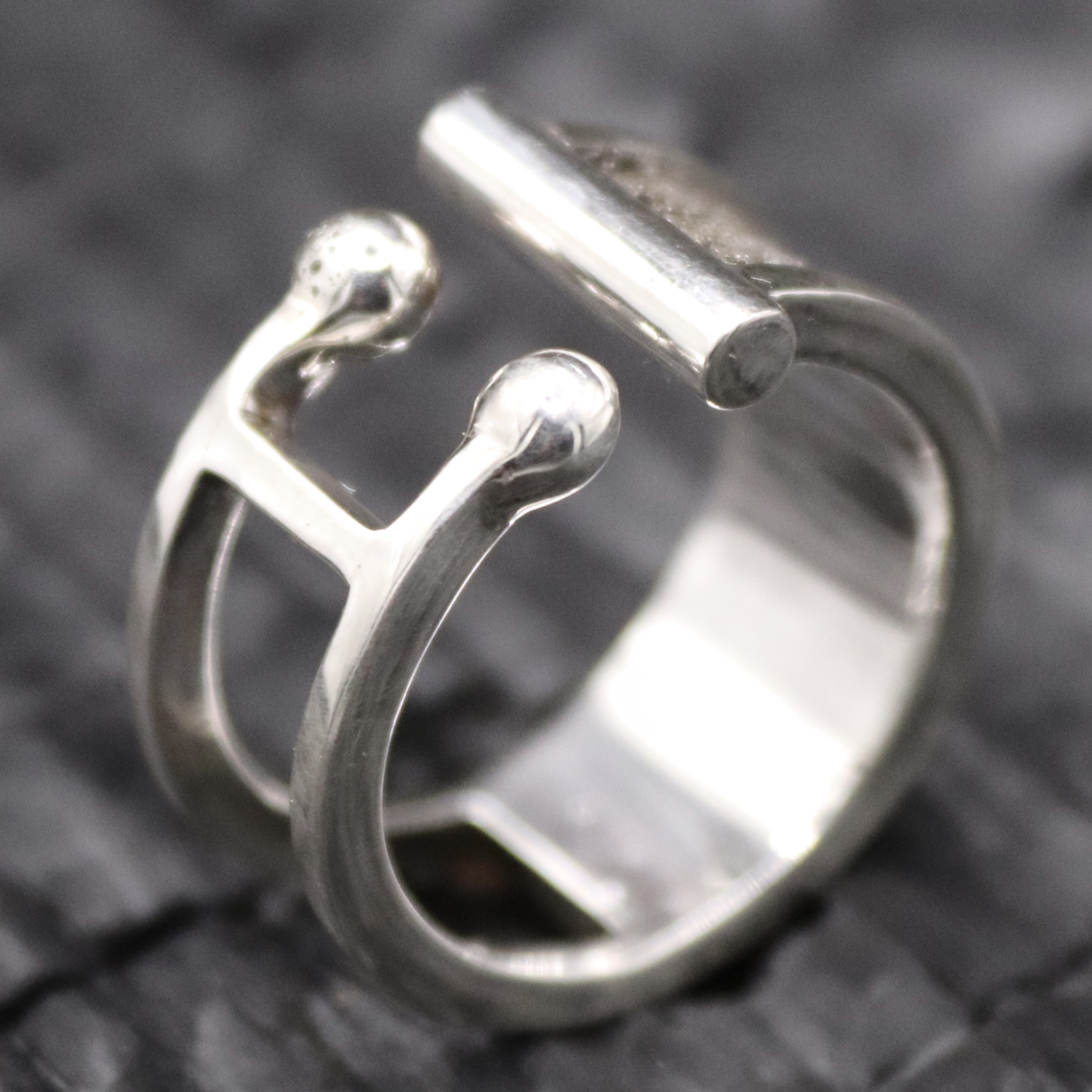 Bague ouverte en argent 950 et poussière d’argent oxydée – Taille 52 à 54
