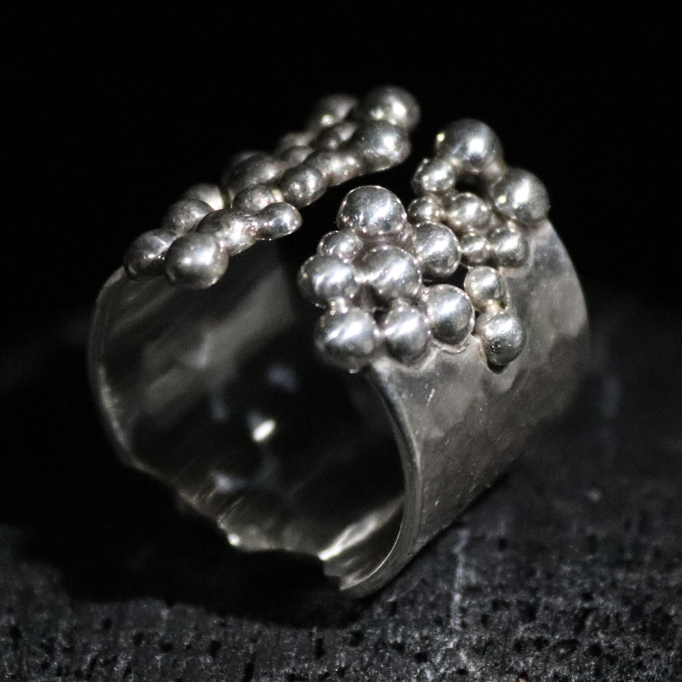 Bague ouverte en argent 950 et poussière d’argent oxydée – pièce unique de créateur – taille 55 à 57