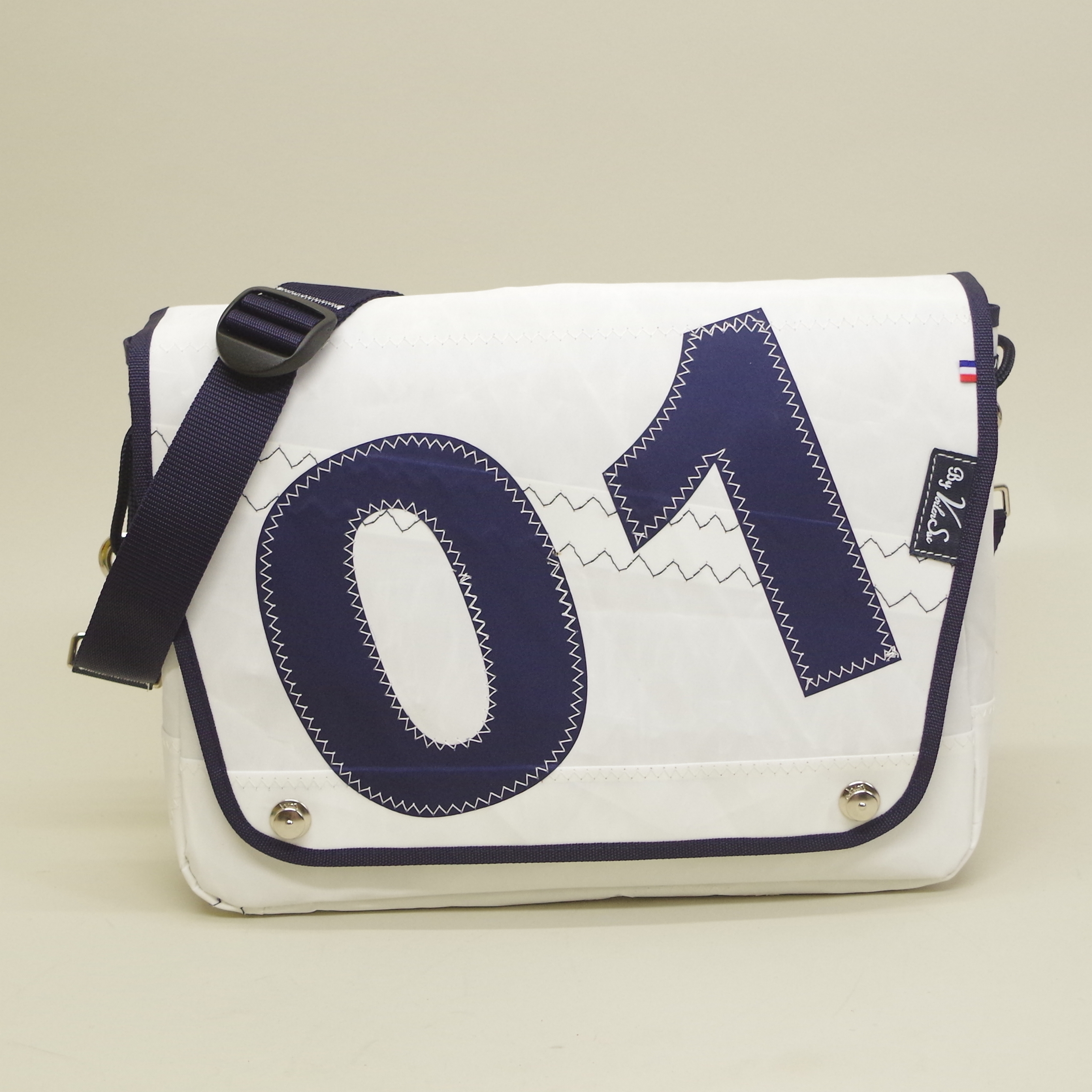 Besace en toile de voile de bateau recyclée dacron et doublure coton, Deux poches zippées: une intérieure, une extérieure, Large bandoulière réglable, Fermeture par Tenax inox. Largeur: 38 cm, Hauteur: 27 cm, Epaisseur 10 cm, Poids: 800g. Cet article est personnalisable: contactez moi!