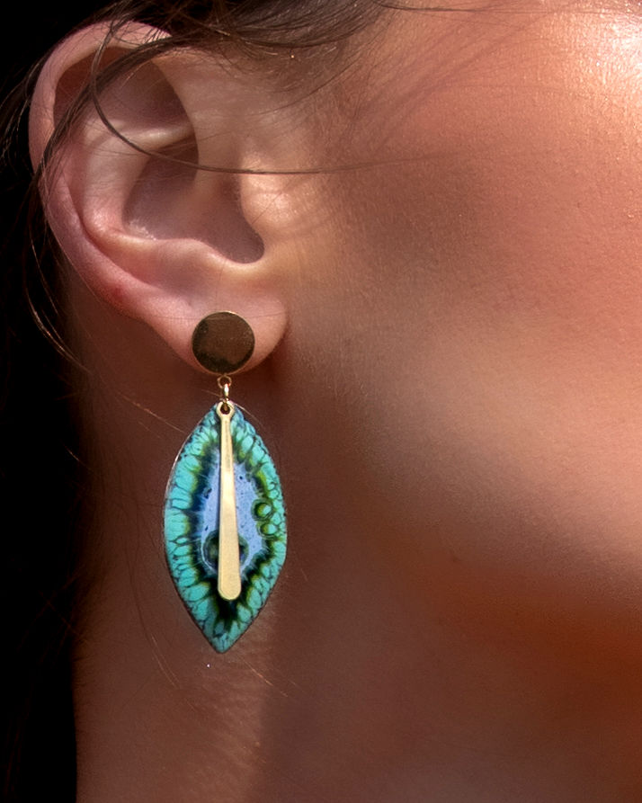 Les boucles d’oreilles Amélie aux courbes opulentes pour un style affirmé. le travail des émaux vous transporte dans un univers à la fois chic et bohème. Monté sur acier inoxydable. Longueur 50mm Largeur 20mm.