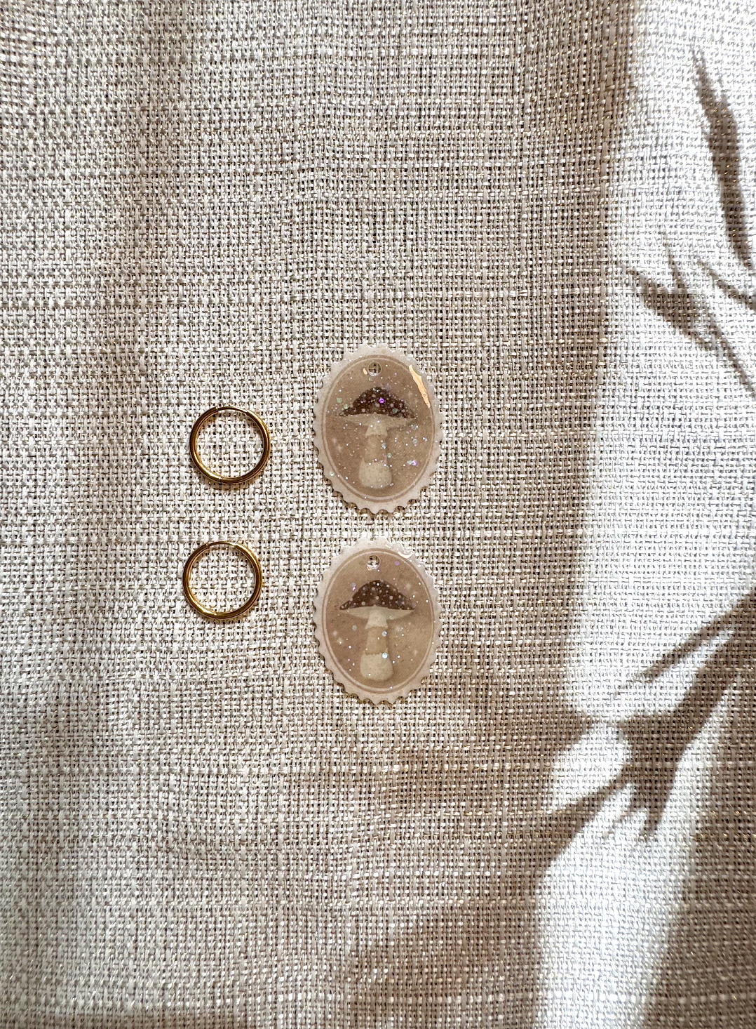 đâđ« Boucles d’oreille Mushroom đâđ« âš Anneaux en acier inoxydable 304L âš Illustration imprimĂ©e sur papier, rĂ©sinĂ© avec incrustation de paillettes de chez @sisilapaillette Les bijoux sont montĂ©s un Ă un, Ă la main avec amour. â€ïž