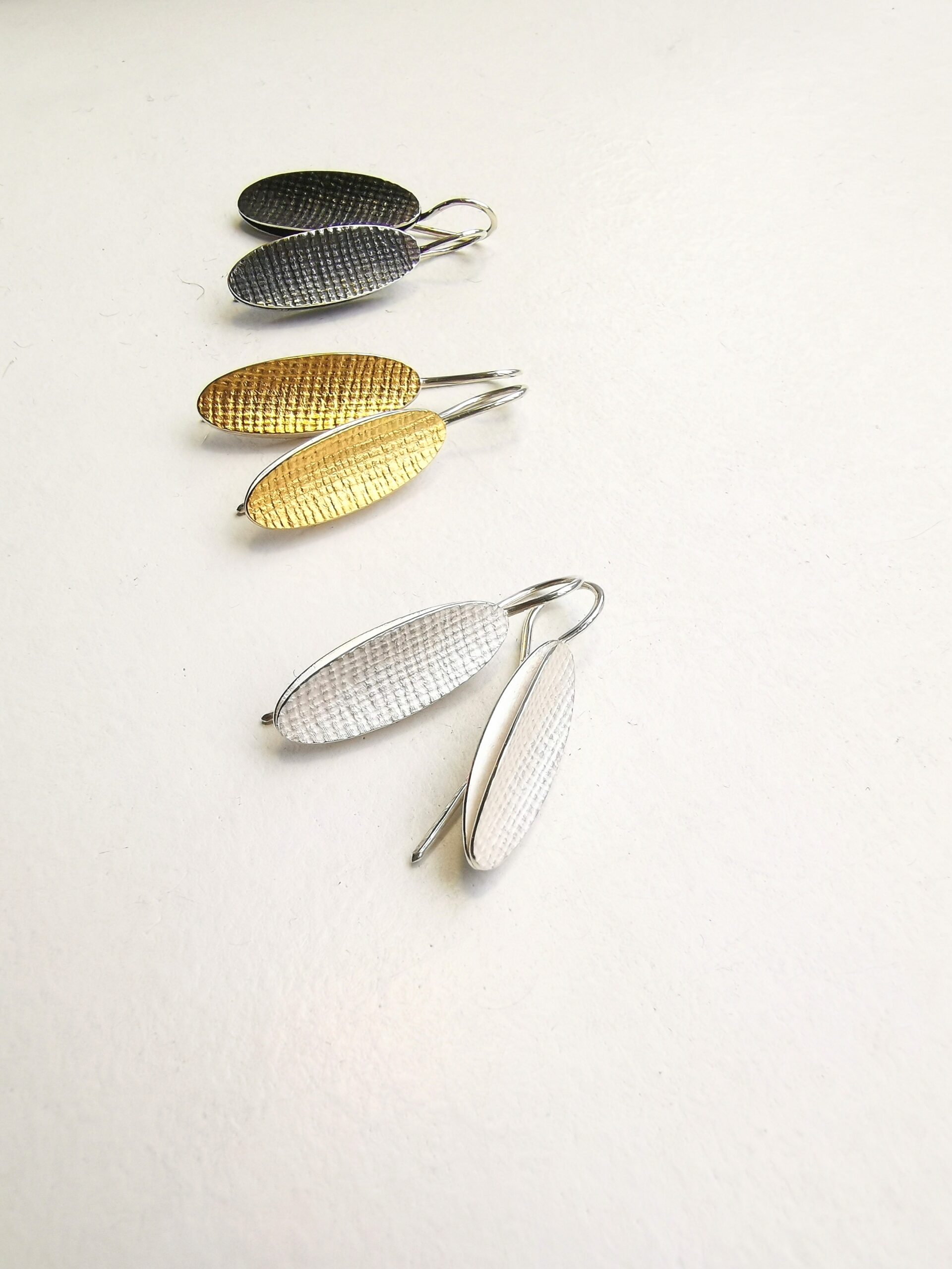 Boucles d’oreilles Capsule en argent avec une texture délicate.