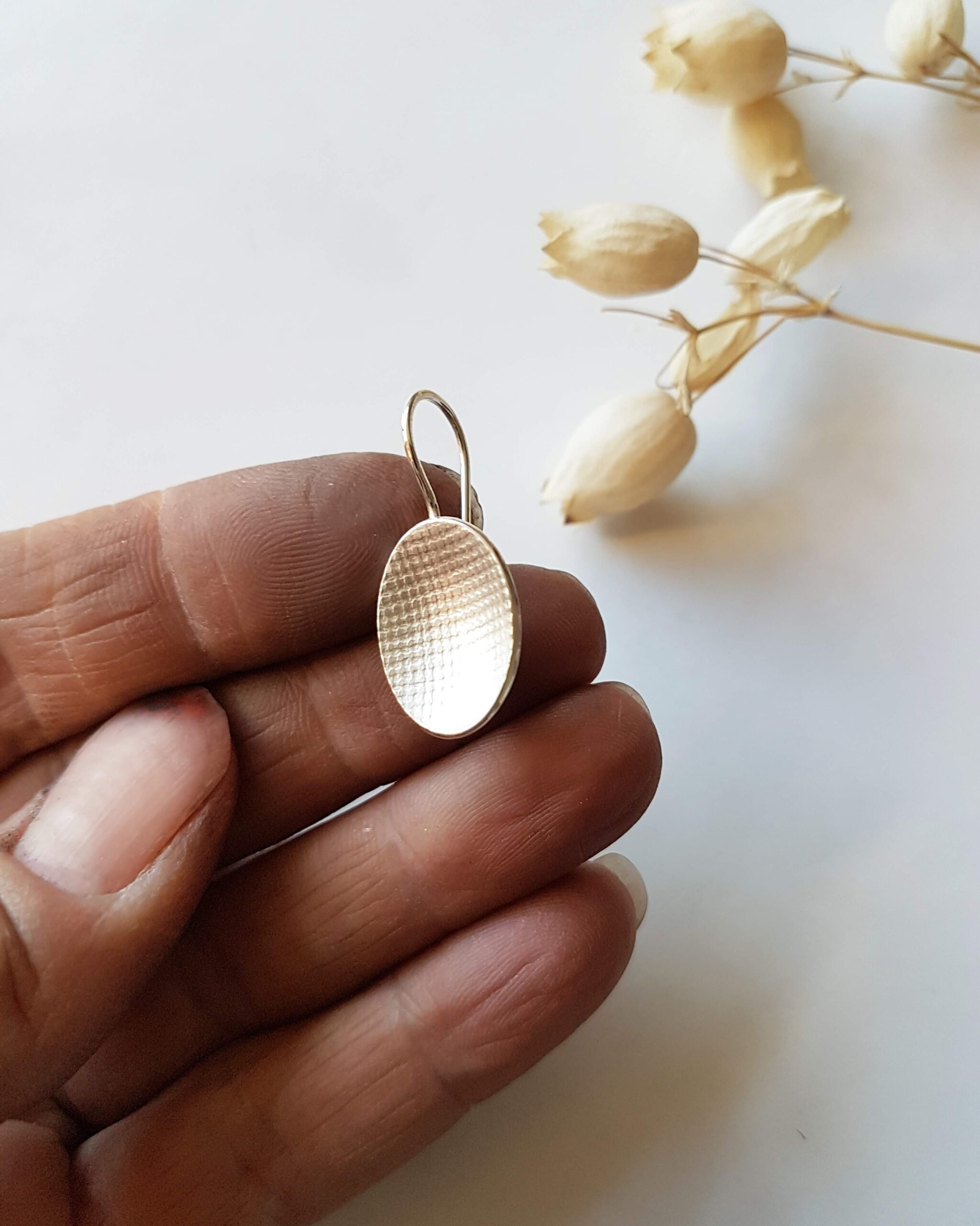 Boucles D’oreilles En Argent Texturé En Form D’ovale.