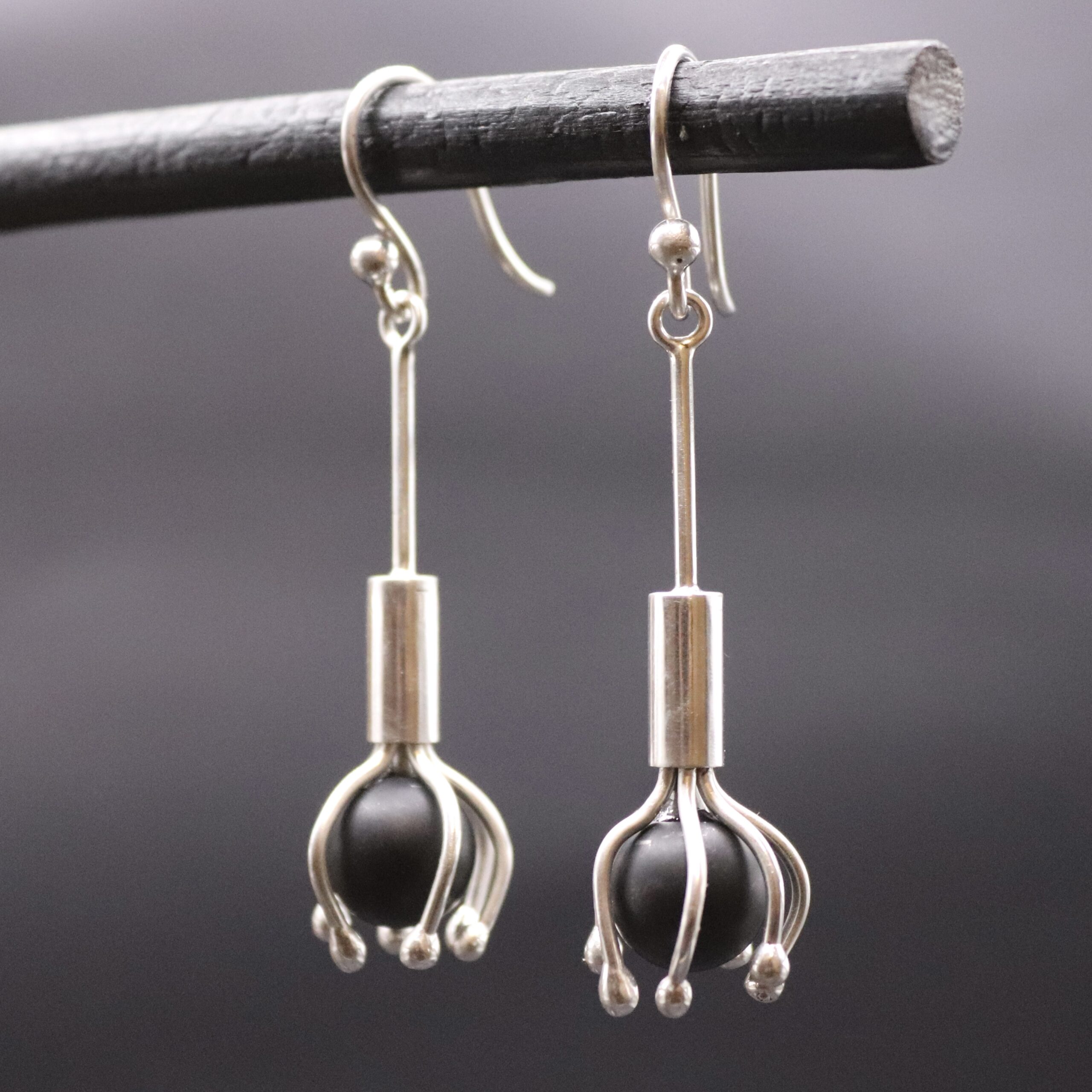 Paire de boucles d’oreilles en argent 950 avec onyx mate – Hauteurs 45 mm – Poids 6.30 gr