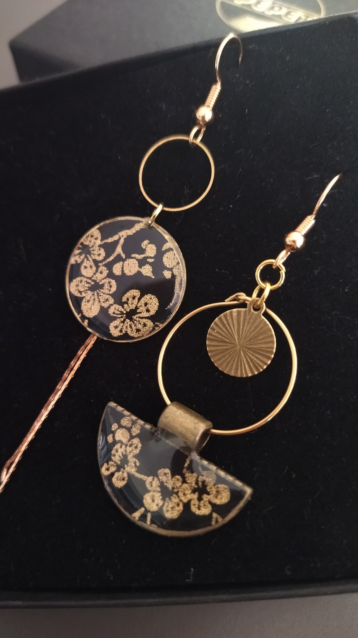 Boucles d’oreilles en washi résiné et laiton.