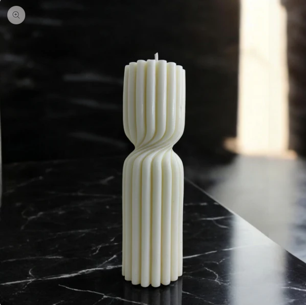Bougie sculpturale moulée à la main représentant une architecture sacrée. Une pièce de décoration artisanale unique en cire végétale.