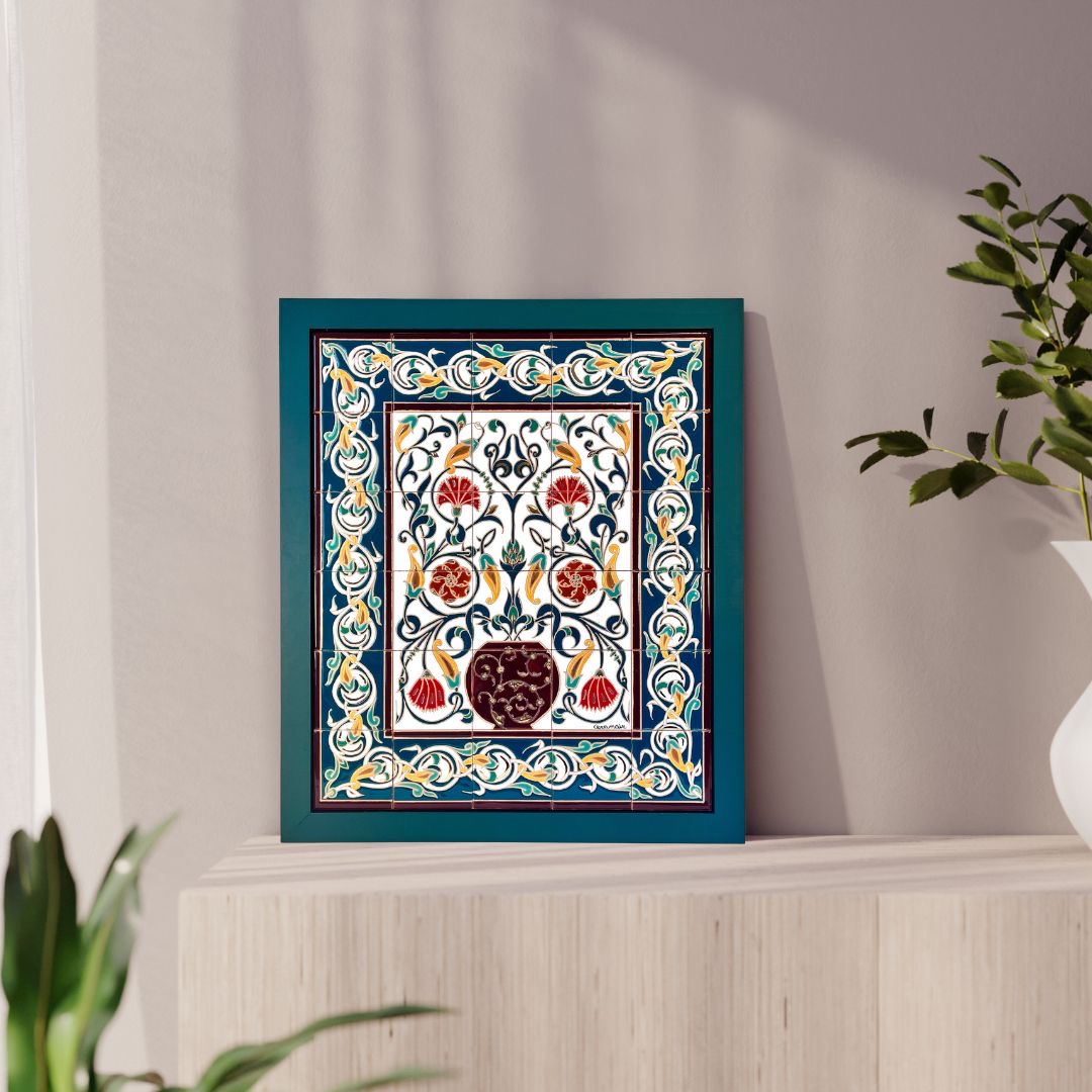 Notre technique du cerne émail, héritée des traditions ancestrales, donne vie à de somptueux ornements floraux et arabesques, sublimant chaque carreau. Chaque détail est façonné à la main, imprégnant le décor noir, façonné avec une délicate alliance de cire et d’huile de lin, sur le biscuit brut, pour offrir une touche d’authenticité unique à chaque création.