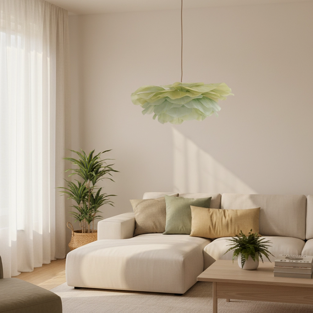 Un nuage de lumière verte façonné artisanalement, dont chaque détail est découpé et modelé à la main pour créer un jardin lumineux, apaisant et immersif.