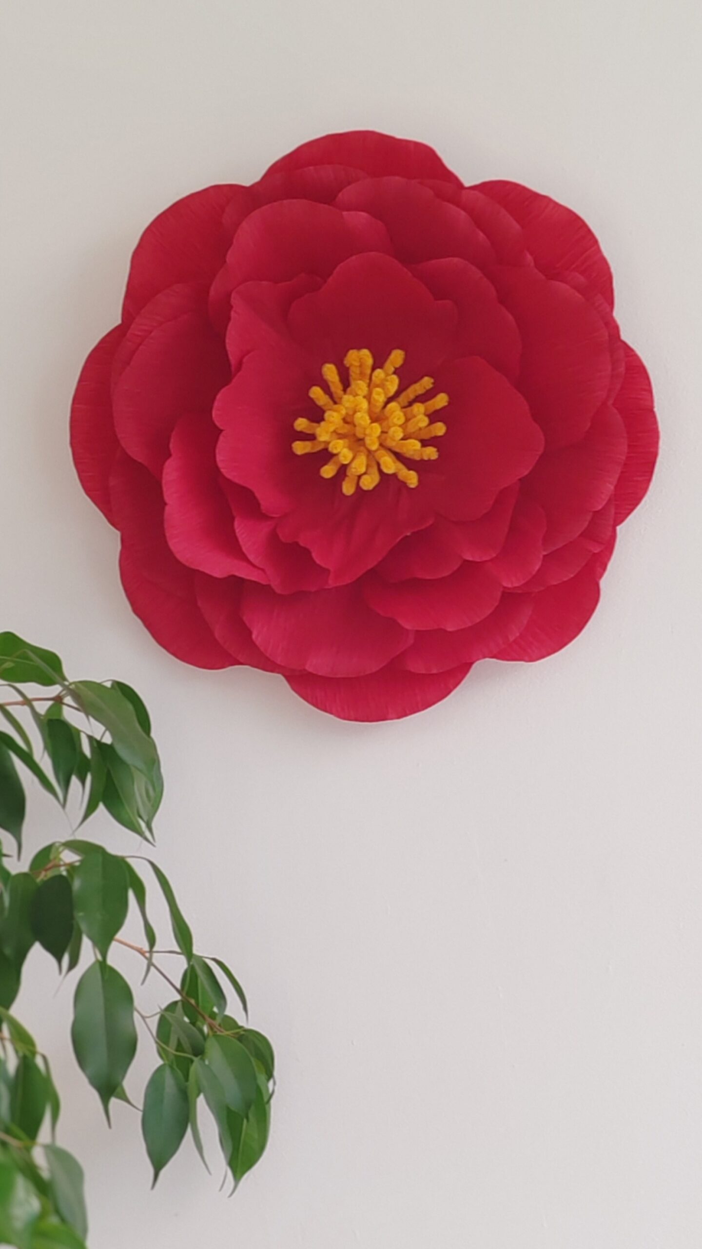 Cette camélia façonnée à la main, disponible en papier de soie ou en crépon, allie délicatesse et romantisme pour sublimer votre décoration.