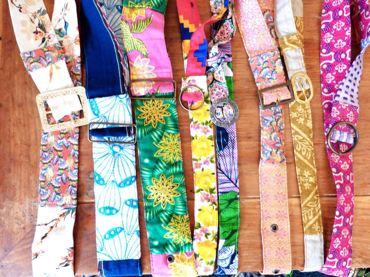 Ceintures fabriquées à partir de recyclage de tissus. Pièces uniques
