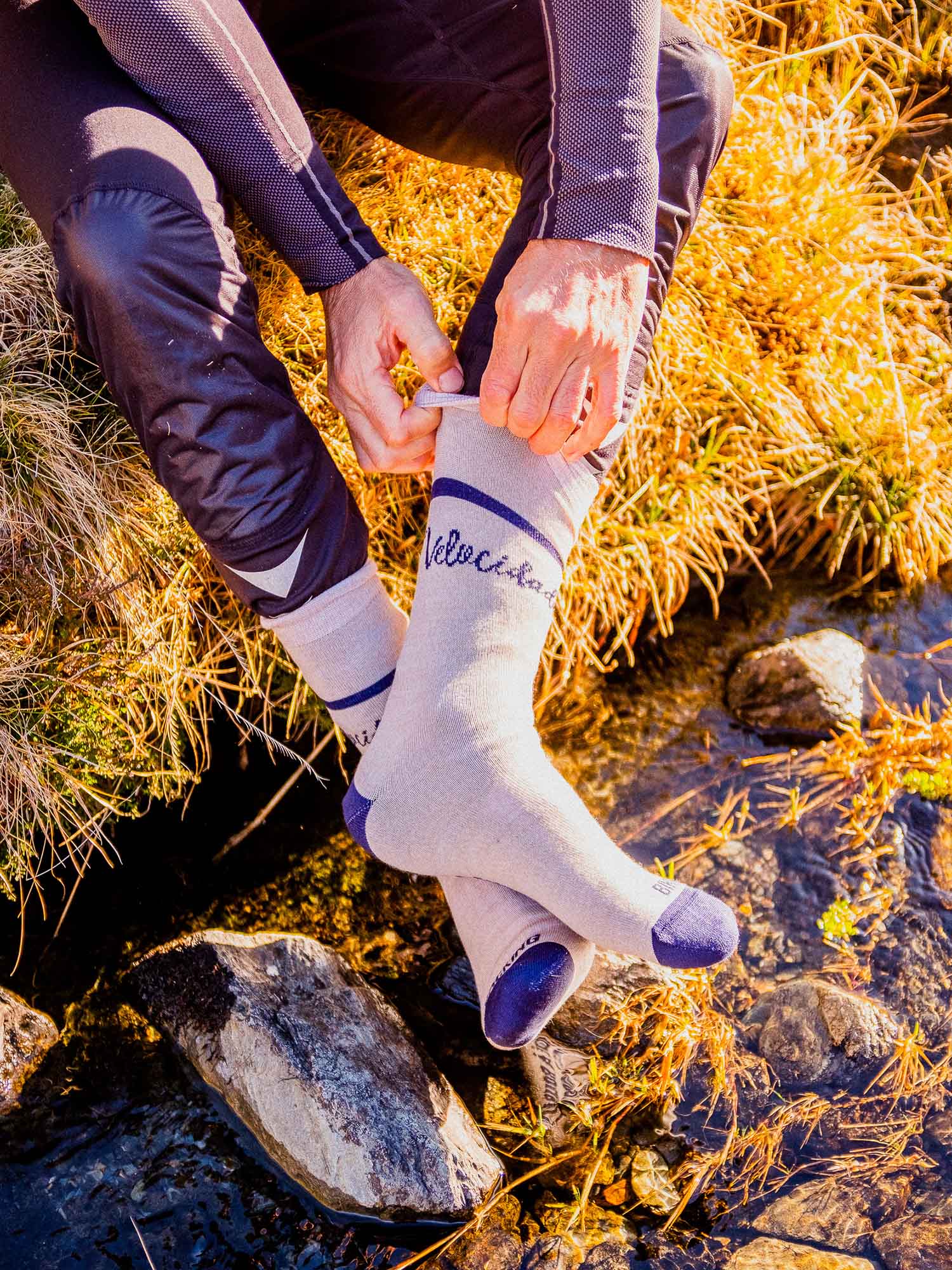 Une paire de chaussettes en laine mérinos thermorégulantes tricotée en France, prête à affronter les sentiers à vélo ou à gravir des montagnes en rando. Voici la version 2.0 disponible en deux couleurs, avec un tricot encore plus solide pour renforcer les talons et les pointes.