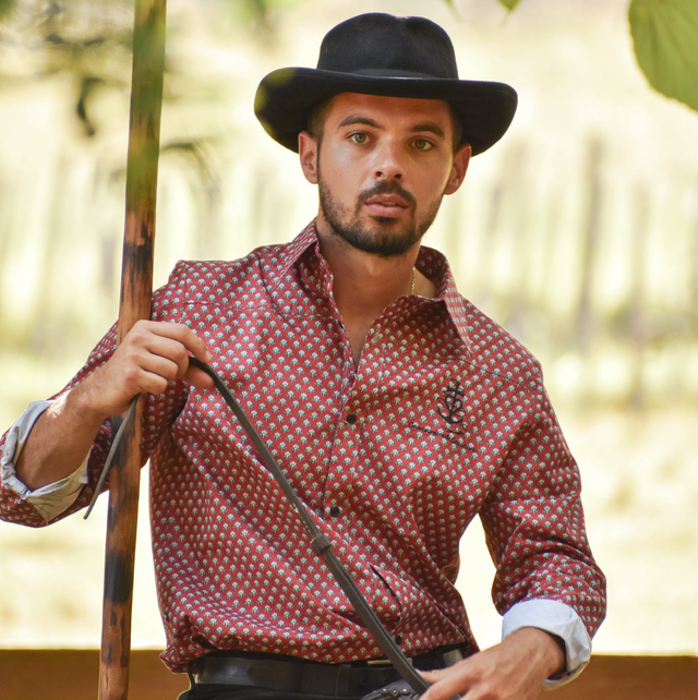 Coupe droite légèrement cintrée pour garder une parfaite aisance dans les mouvements et un confort à cheval en toutes circonstances. Le modèle Folco rend hommage au Marquis Folco de Baroncelli-Javon grand maître de la Camargue, sans qui, nos traditions ne seraient pas ce qu’elles sont aujourd’hui. •Tissu 100% coton Oeko-Tex 🌸 •Broderie logo Camargue&Couture sur la poitrine côté cœur •Col et poignets renforcés •Manches longues avec patte capucin, poignets fermés par un bouton •Bas de chemise découpe arrondie sur les côtés •Patte de boutonnage devant avec 7 boutons Le modèle porte une taille M. Le label Oeko-Tex vise à garantir un tissu sans aucune substance nocive, sans danger pour l’homme et l’environnement. De la culture du coton jusqu’à l’impression du motif. ~ Création de chemises traditionnelles camarguaises et accessoires 100% made in France. Confection en mini série, ou à la commande dans le respect des traditions de Camargue.