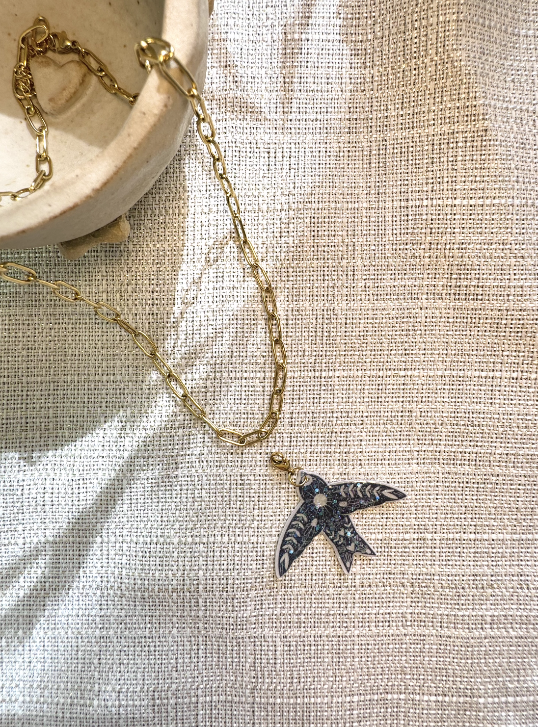 đïž Collier Bird đïž âš ChaĂźne en acier inoxydable 316L âš Illustration imprimĂ©e sur papier, rĂ©sinĂ© avec incrustation de paillettes de chez @sisilapaillette Les bijoux sont montĂ©s un Ă un, Ă la main avec amour. â€ïž