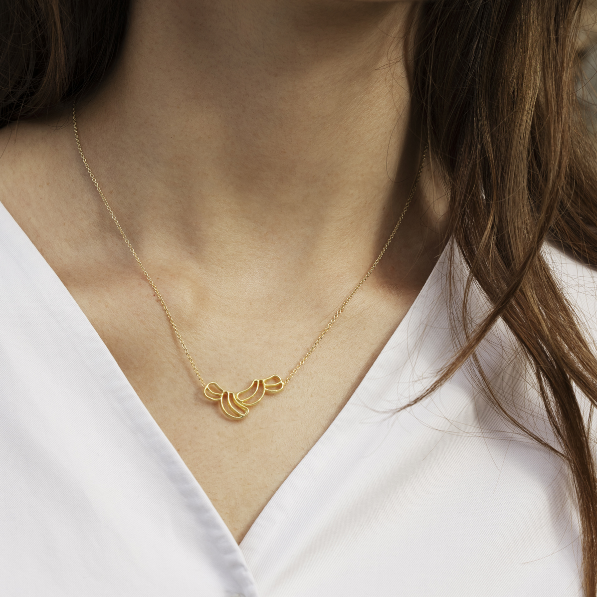 Ce collier se compose de deux motifs et d’une chaîne maille ronde en or 750/1000 équitable certifié Fairmined. Longueur 42cm.