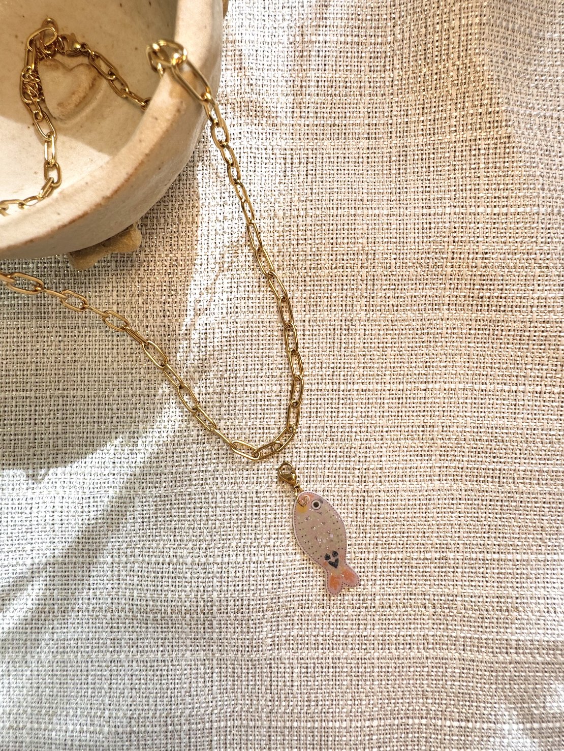 đ Collier Poisson đ âš ChaĂźne en acier inoxydable 316L âš Illustration imprimĂ©e sur papier, rĂ©sinĂ© avec incrustation de paillettes de chez @sisilapaillette Les bijoux sont montĂ©s un Ă un, Ă la main avec amour. â€ïž