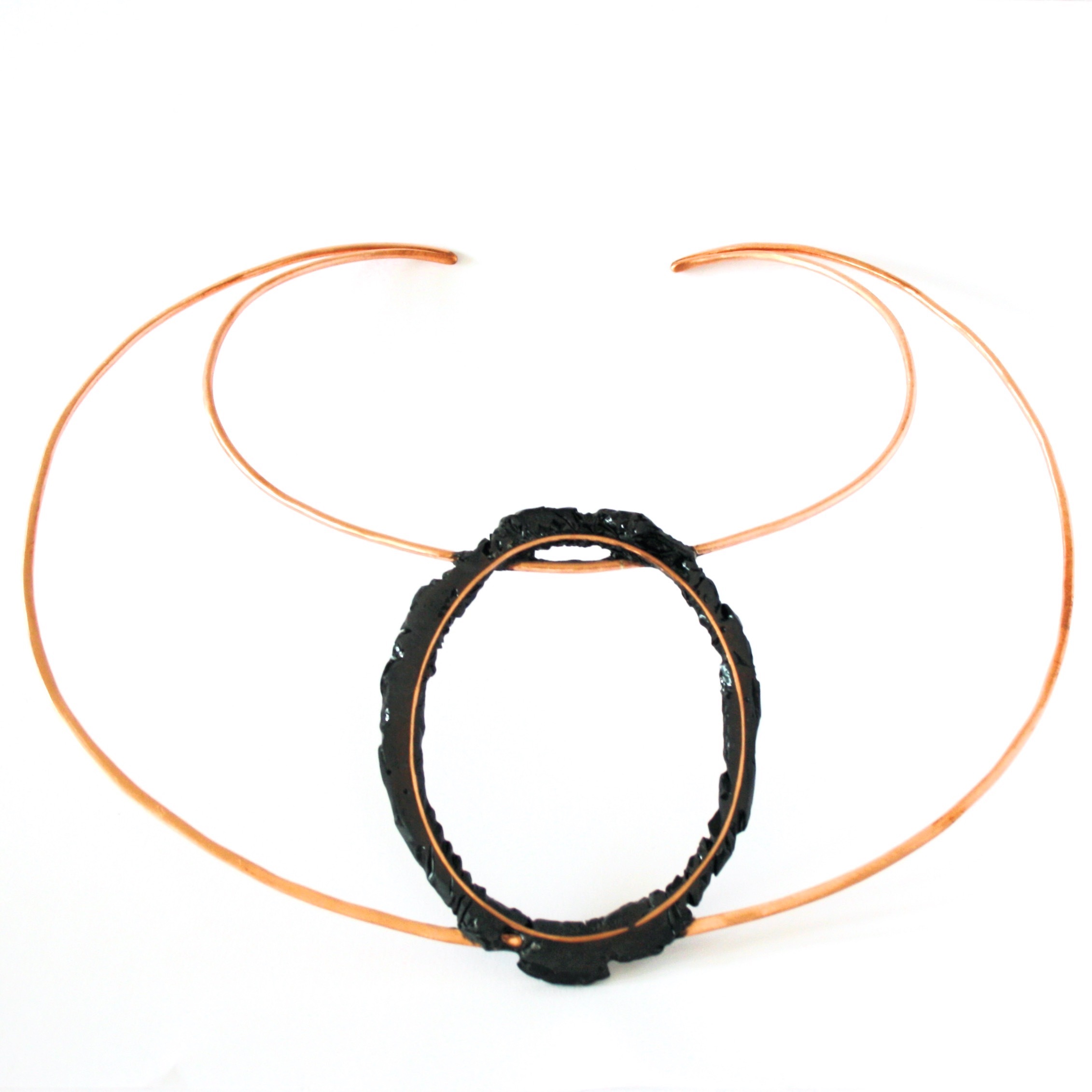 Diplômée de bijouterie contemporaine de l’école Alchimia à Florence en 2018, je suis depuis revenue m’installer en France et ai créé ma microentreprise et mon atelier dans le mas familial près de Vinça (Pyrénées Orientales) en Septembre 2022. Ayant été formée à de nombreuses techniques traditionnelles ainsi que plus contemporaines, mon approche se concentre sur l’expérimentation des matériaux insolites et surprenants. Je travaille aujourd’hui l’alliance entre le cuivre et le charbon stabilisé dans une résine époxy. Ces deux matériaux ont pour moi un caractère mystique et mystérieux que je cherche à mettre en valeur en créant des bijoux de corps, des bijoux-talismans. Ils racontent une histoire, aussi bien par leur forme et leur création que par le nom et le récit que je leur attribue. Passionnée par le monde antique, je m’inspire des contes et légendes de l’ancien monde, des héros et héroïnes d’antan pour ne forger que des pièces uniques.