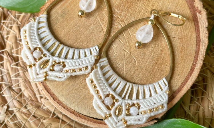 Fabrication de bijoux avec la technique du micro macramé en incluant des pierres naturelles
