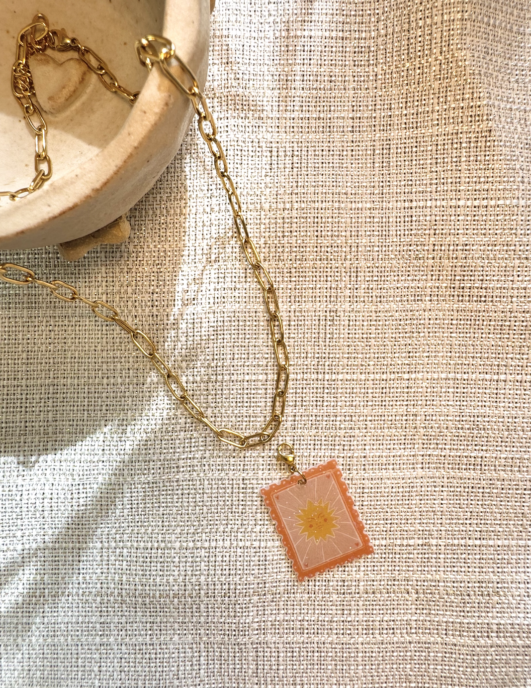 đ Collier Sun đ âš ChaĂźne en acier inoxydable 316L âš Illustration imprimĂ©e sur papier, rĂ©sinĂ© avec incrustation de paillettes de chez @sisilapaillette Les bijoux sont montĂ©s un Ă un, Ă la main avec amour. â€ïž