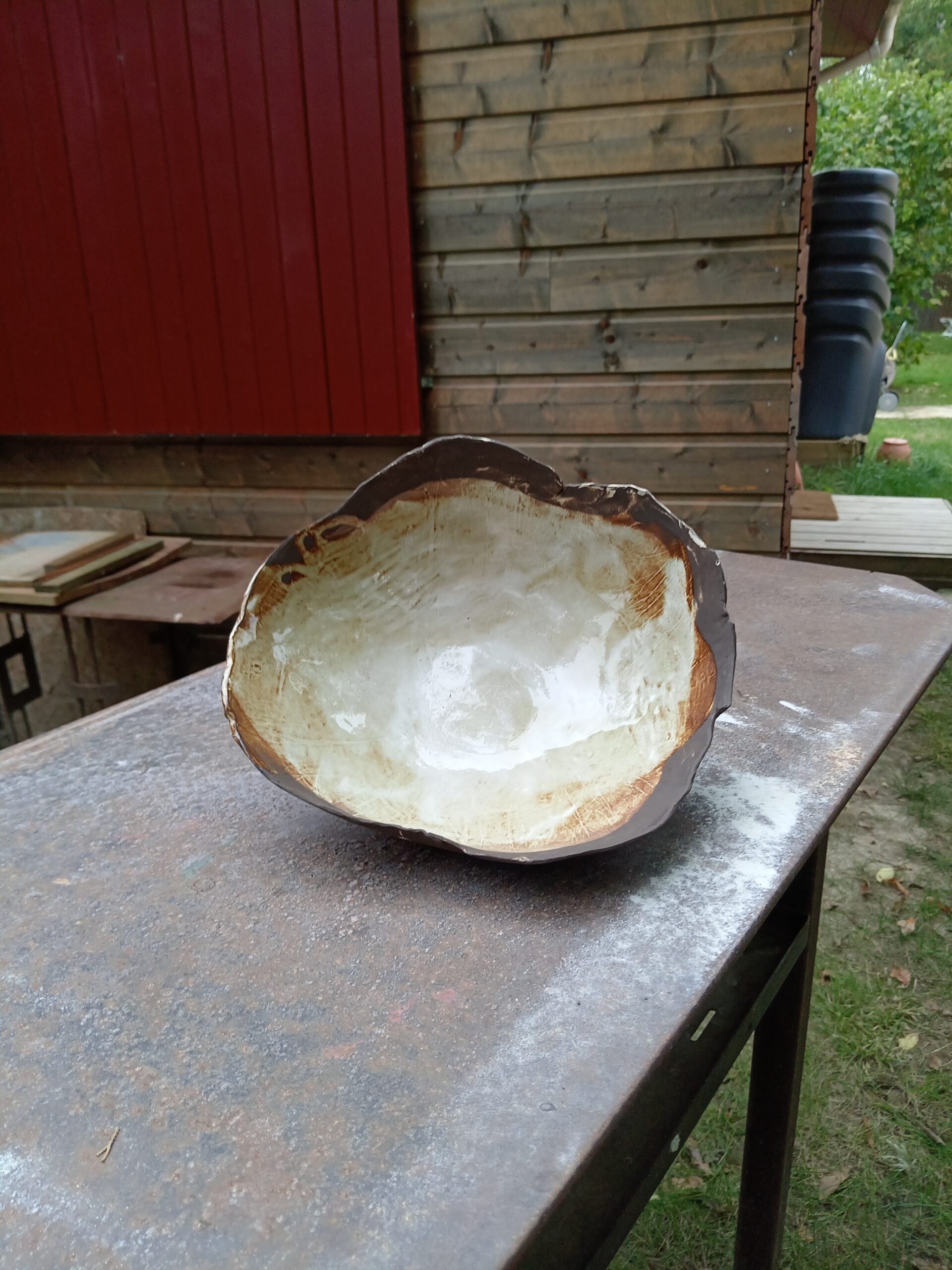 contenant forme « saladier’, grès noir et blanc mêlés, émail intérieur, terre brute extérieur