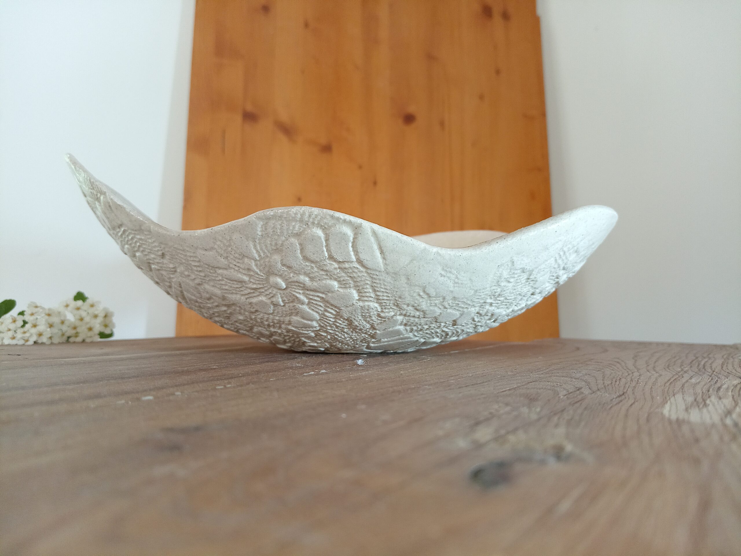 contenant forme saladier, émail couverte brillante, texturé dentelle