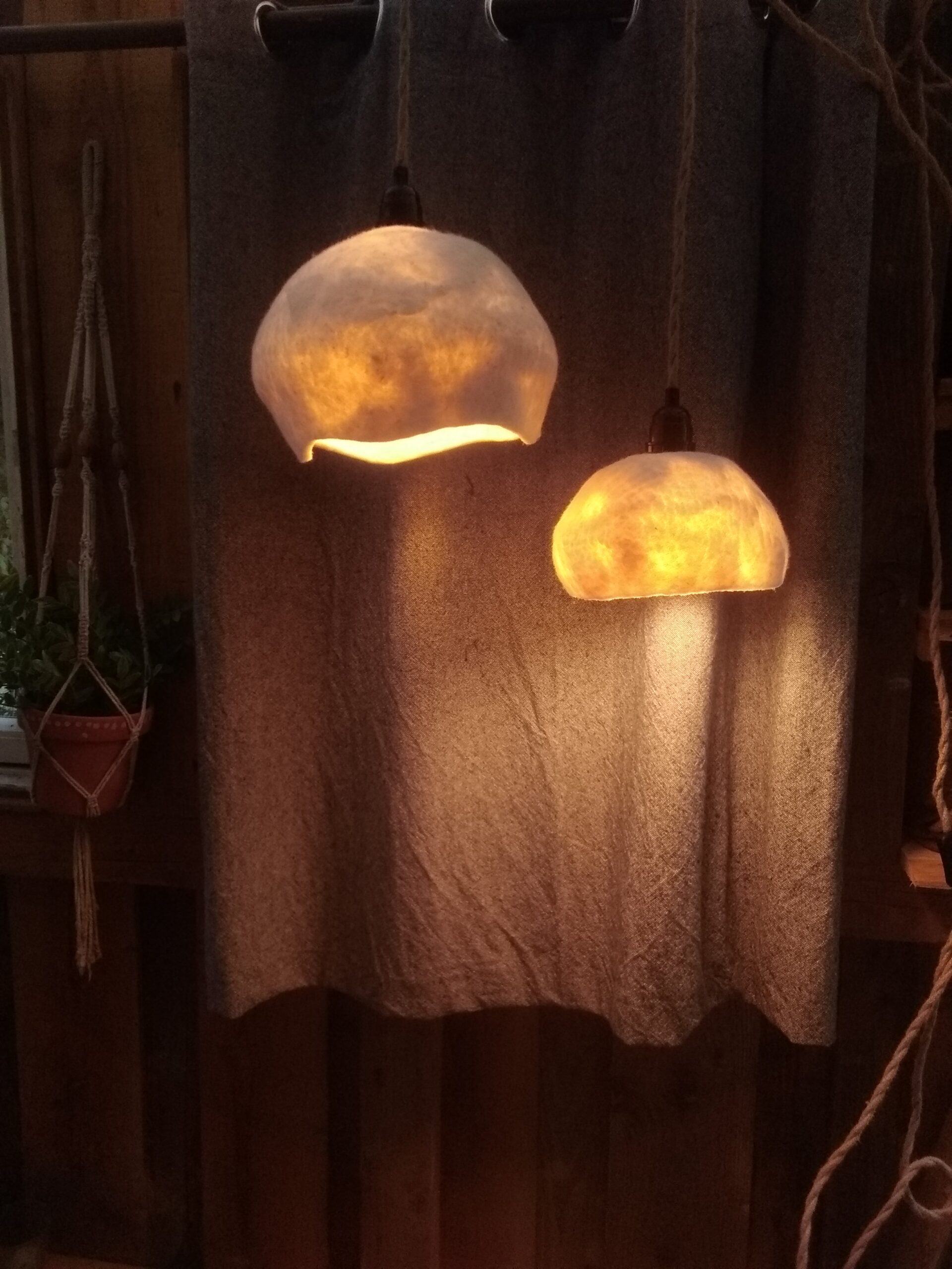 Luminaire en laine des Pyrénées, feutrée à la main