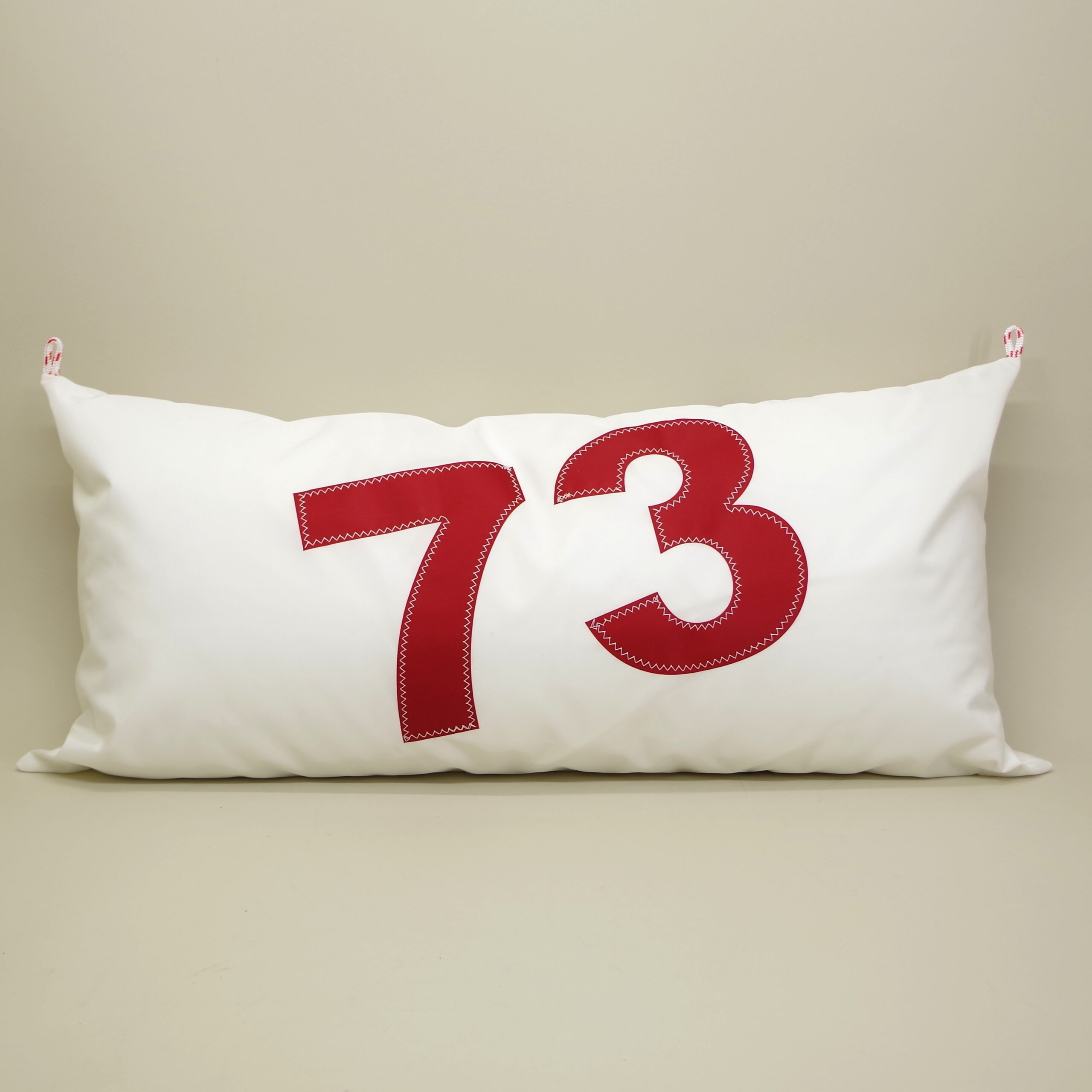 Coussin en voile de bateau marqué N° 2 bleu. Numéro cousu en point zig zag. Housse en tissu à voile polyester. Deux passants en cordage pour le fixer au bateau. Fermeture par zip. Garnissage ouate polyester. Déhoussable et lavable en machine. N’hésitez pas à me contacter pour personnaliser le votre: marquage, taille.