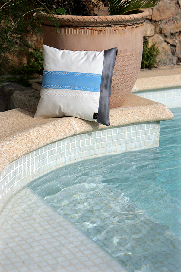HOUSSES DE COUSSIN – Utilisable en extérieur (déperlant, résistant aux UV) – Ceinture de sécurité auto usagée gris (polyester) – Voile de bateau usagée, provenant de la base nautique du Salagou Les Vailhès – Fermeture éclair gris foncé – Confectionné artisanalement – Lavable en machine à 40° Production à la demande (délai moyen : 1 mois). Livraison offerte pour la France. FORMAT – carré : S 31*31 cm (photo) ; L 40*36 cm – rectangle : M 40*31 cm ; XL 58*36 cm Correspondant à des rembourrages standards (non fournis). En détails Nos accessoires bénéficient de ce tissu technique. Ils sont légers et résistants. Ils présentent de petites variations visuelles découlant du gisement : chaque voile récupérée est différente (taille, couleur, détérioration…). Les photos sont indicatives. Nos accessoires racontent leur passé nautique ! C’est le propre de ce type d’upcyclage de générer des séries de pièces quasi uniques et légèrement imparfaites. Style et qualité garantis !