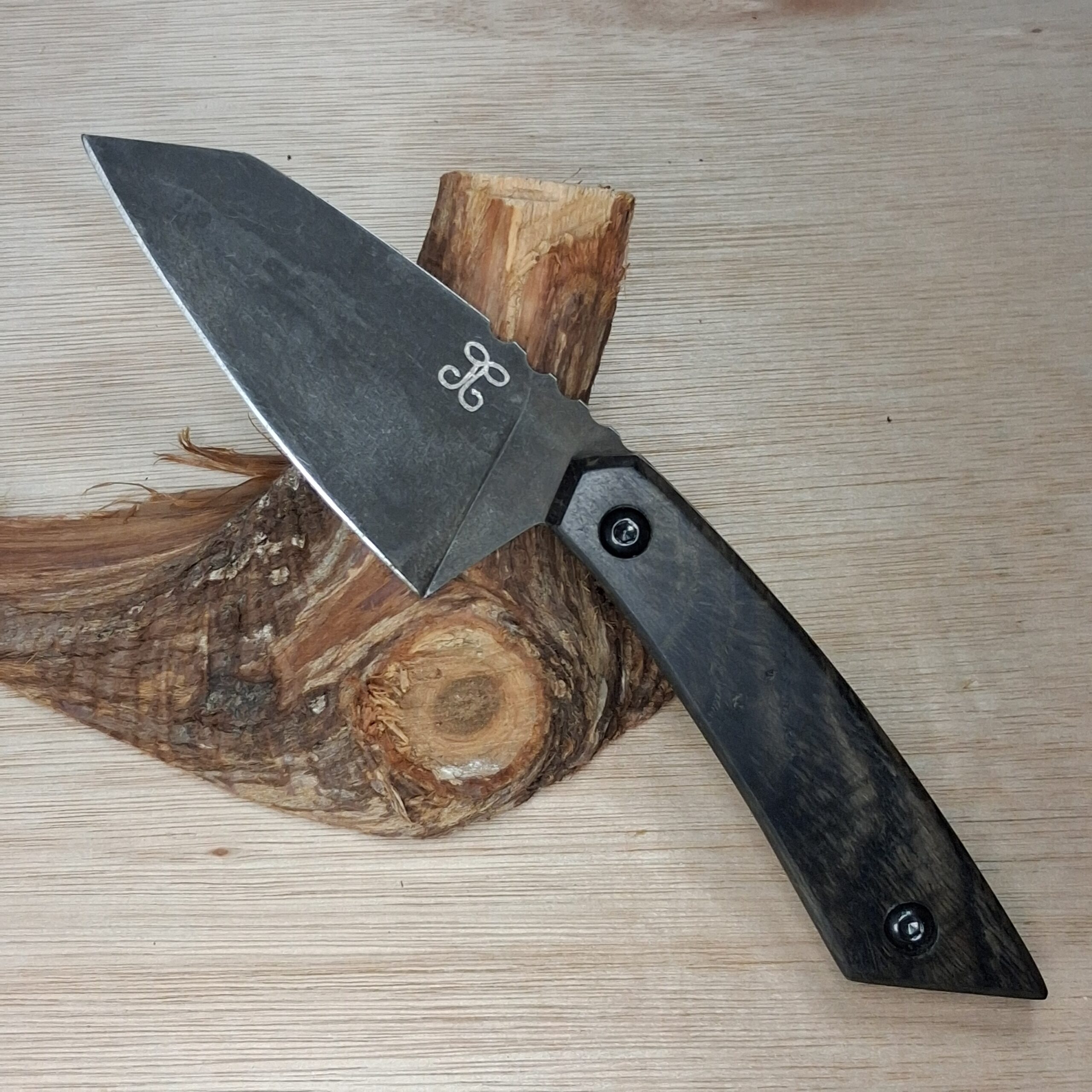 Couteau de cou le « Patufet » en hommage au petit personnage éponyme, petit et débrouillard. Couteau à porter autour du cou ou à la ceinture, dans son étui Kydex thermo-moulé.