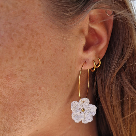 Chaque fleur est délicatement crochetée à la main avec du fil coton. Montées sur des créoles en acier inoxydable doré, elles sont ornées d’une perle en leur centre. Légères, durables et disponibles en plusieurs couleurs, les créoles « Aïyana » se portent aussi bien au quotidien que lors d’occasions spéciales. Un bijou délicat, à offrir ou à s’offrir, pour apporter une touche de douceur à chaque tenue.
