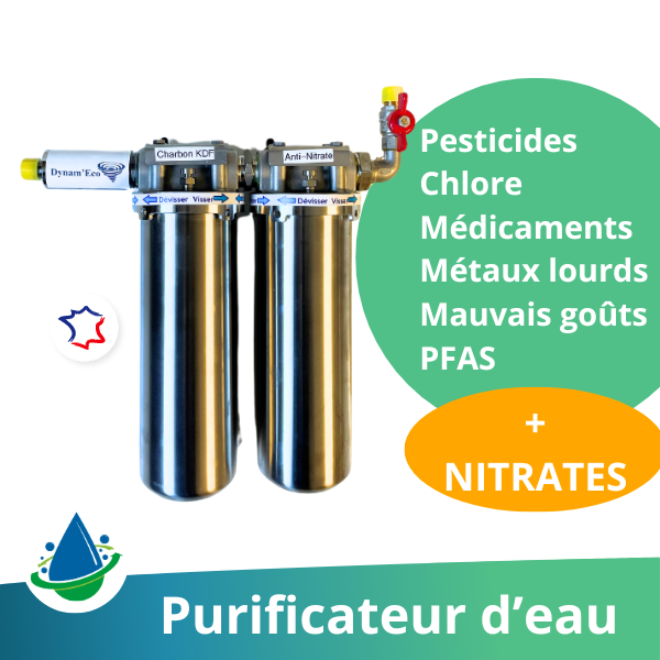 Le Dynam’Eco est un purificateur d’eau domestique innovant, conçu pour offrir une eau saine, pure et naturellement agréable à boire. Installé directement sous l’évier, il combine charbon actif et KDF pour éliminer chlore, résidus médicamenteux, pesticides et métaux lourds, tout en conservant les minéraux essentiels tels que calcium et magnésium. L’eau est ensuite dynamisée grâce à un vortex intégré, ce qui améliore son goût, sa structure et sa qualité pour l’hydratation et la préparation des aliments. Compact et facile à installer, le Dynam’Eco ne nécessite ni électricité ni entretien complexe : la cartouche se remplace simplement tous les 6 à 12 mois selon usage. Fabriqué en acier inoxydable et matériaux durables, il allie performance, durabilité et respect de l’environnement. Adapté à tous les foyers soucieux de santé et d’écologie, il complète idéalement le système EcoCrystal pour une protection totale contre le calcaire et les impuretés.