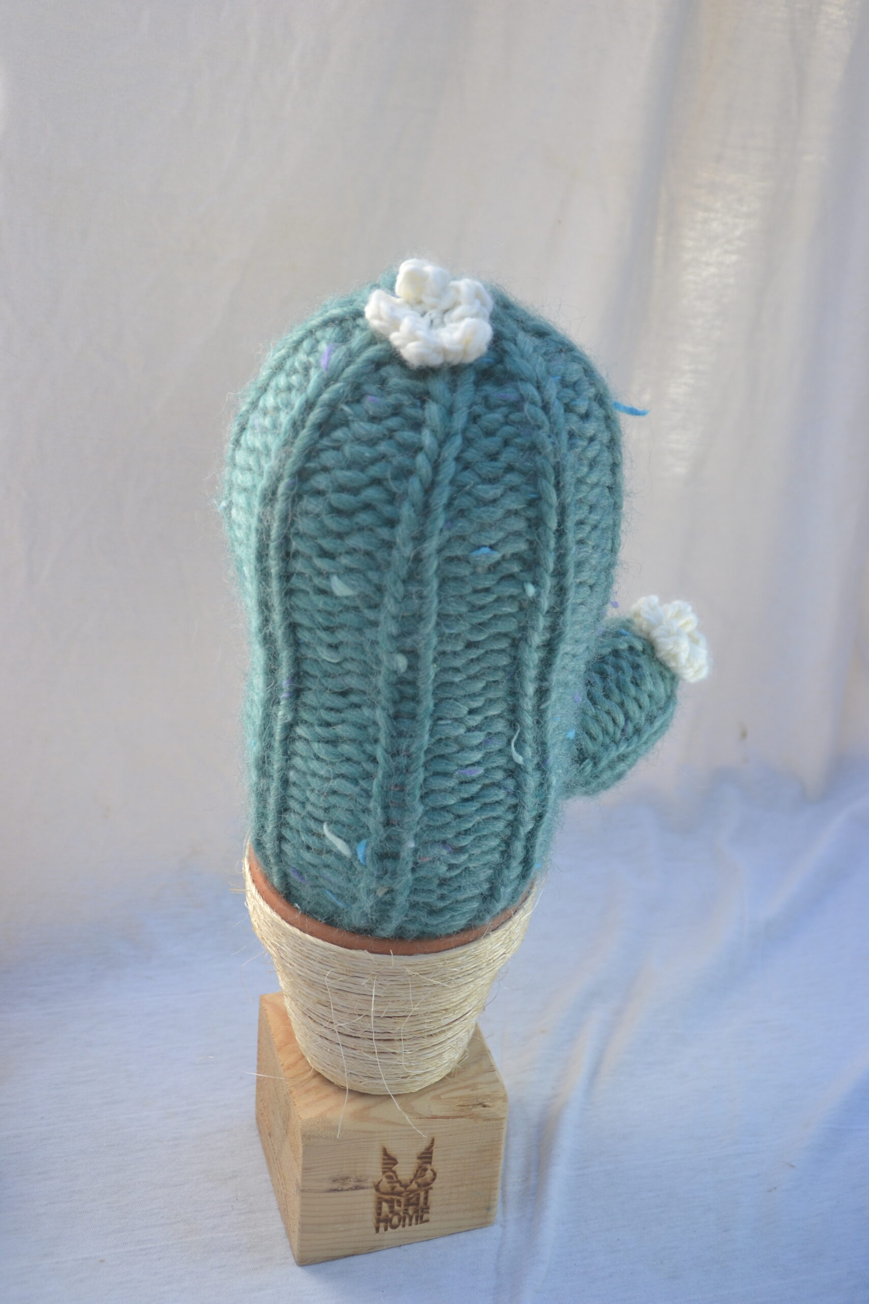 Vous n’avez pas la main verte et avez déjà noyé des cactés ? Ou alors vous n’aimez pas vous piquer lorsque c’est la saison du rempotage ? Ou encore vous avez une pièce trop sombre pour y mettre des plantes ? Ou bien vous êtes tout simplement fan de cactus ? Alors voici un Cactus tricoté à la main en côtes qui sera parfait pour vous et pourra amener un peu de douceur dans votre intérieur. Les Fleurs ont été réalisées à la main, au crochet. le Pot est en terre cuite (d’une hauteur de 10cm) a été recouvert/entourer de fil de jute de couleur « nude ». Une plante réellement increvable et qui vous réconciliera avec les cactus, ou vous confortera dans votre addiction pour les cactus. La hauteur totale de cette décoration toute douce est de 34cm, et il mesure 13cm de diamètre (+ 9cm pour le bras)