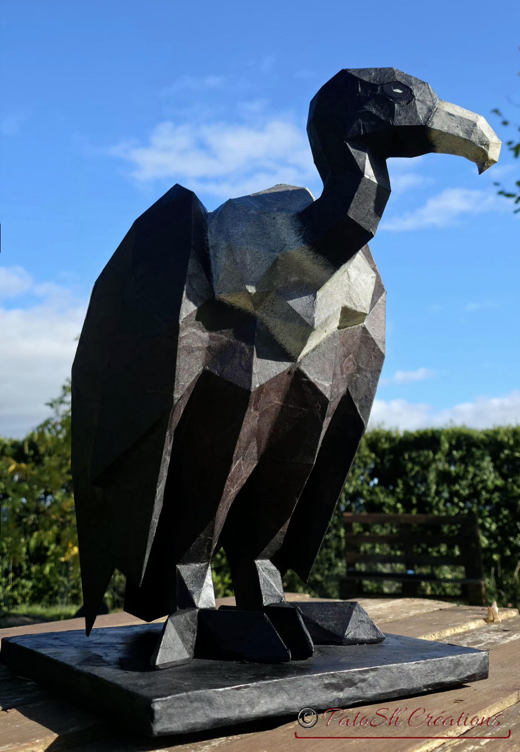 Sculpture en papier cartonné sur socle en bois et carton – dimension : l=28cm / L=46cm / H=32cm