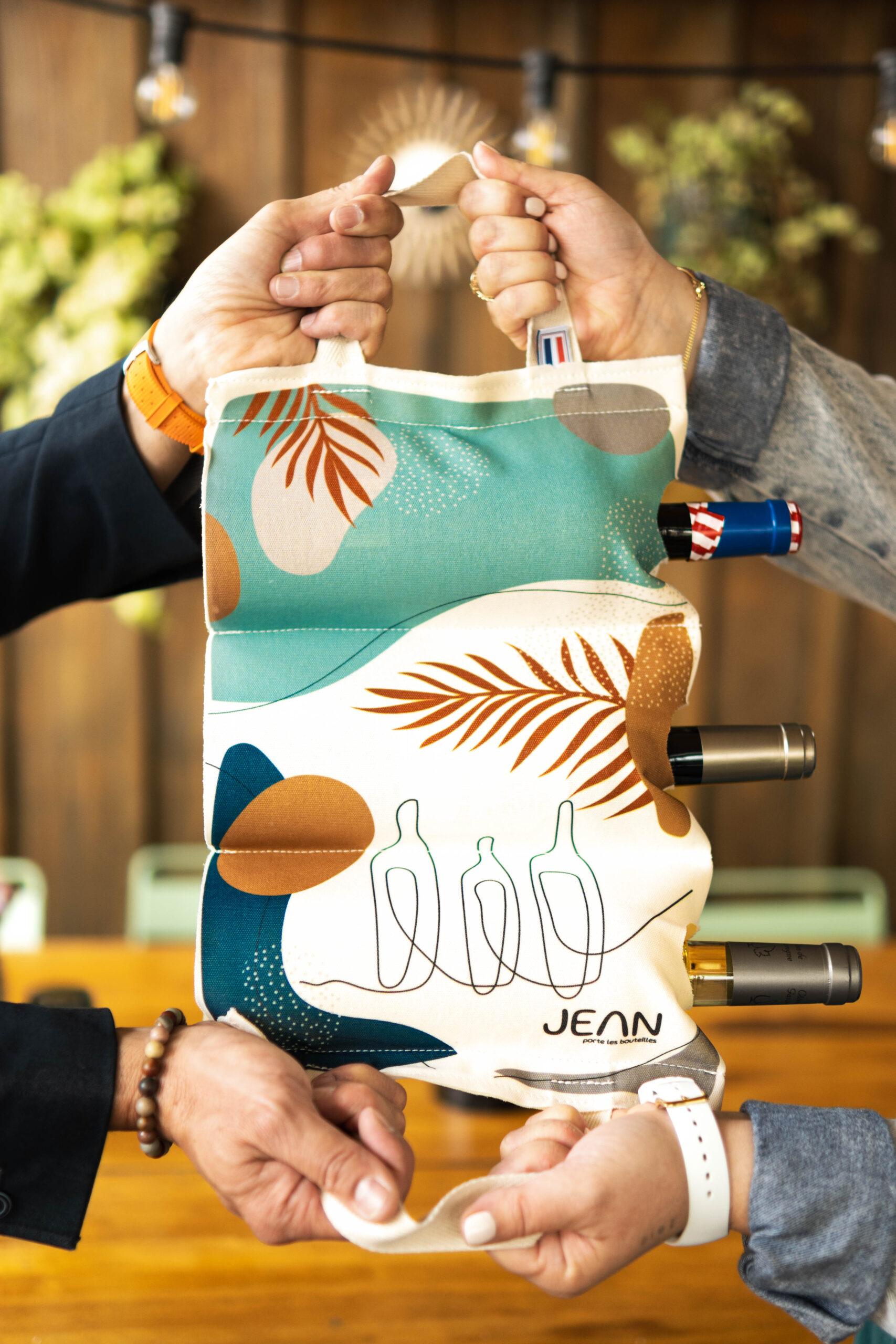 JEAN-CAMILLE est un des « sacs » de la gamme JEAN, création Mailles & Sacs. Il s’agit d’un « sac » 3 en 1 qui permet de transporter 3 bouteilles, d’en faire un paquet cadeau et de stocker les 3 bouteilles de façon décorative. Conception et fabrication 100% Tarnaise.