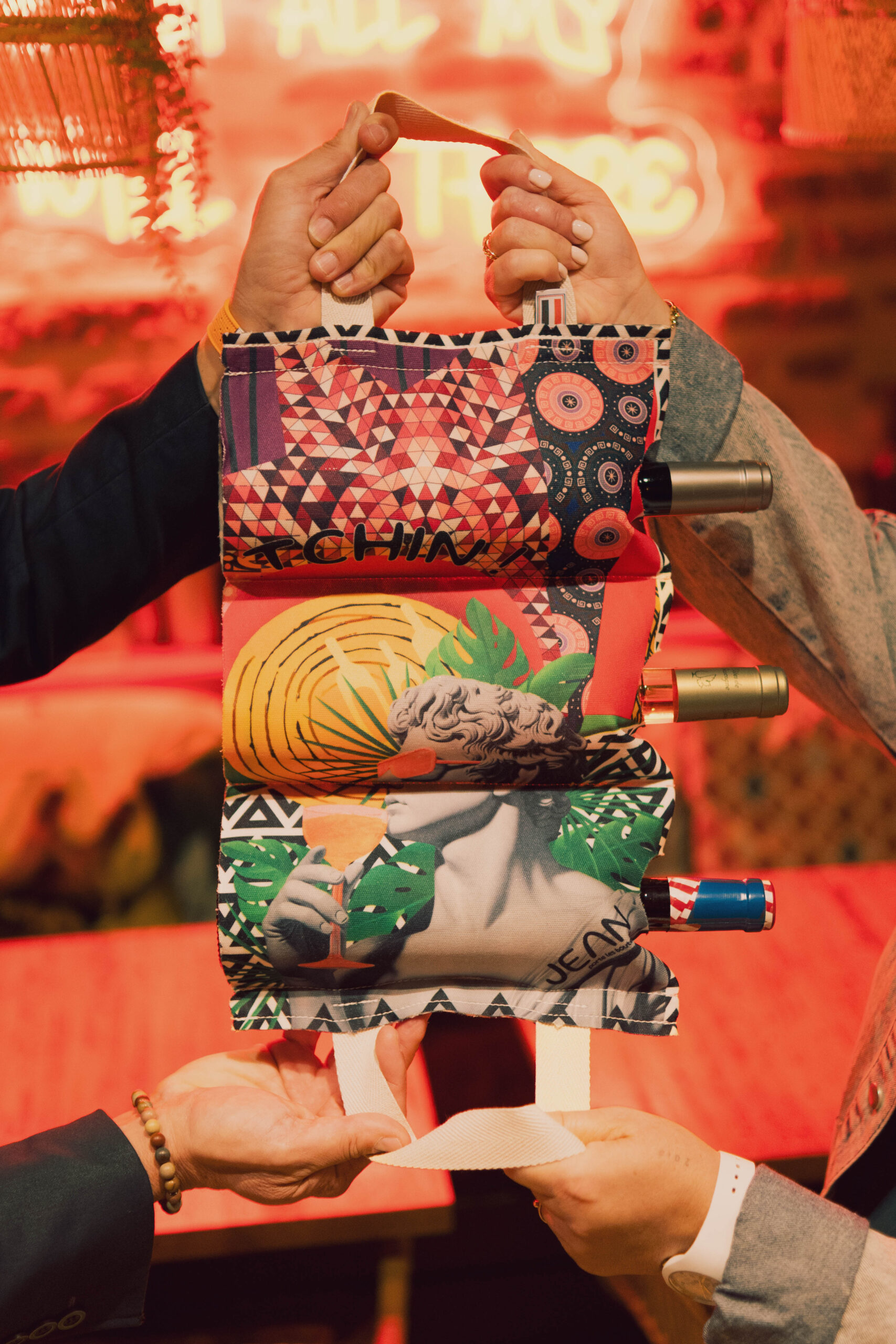 JEAN-EUDE est un des « sacs » de la gamme JEAN, création Mailles & Sacs. Il s’agit d’un « sac » 3 en 1 qui permet de transporter 3 bouteilles, d’en faire un paquet cadeau et de stocker les 3 bouteilles de façon décorative. Conception et fabrication 100% Tarnaise.