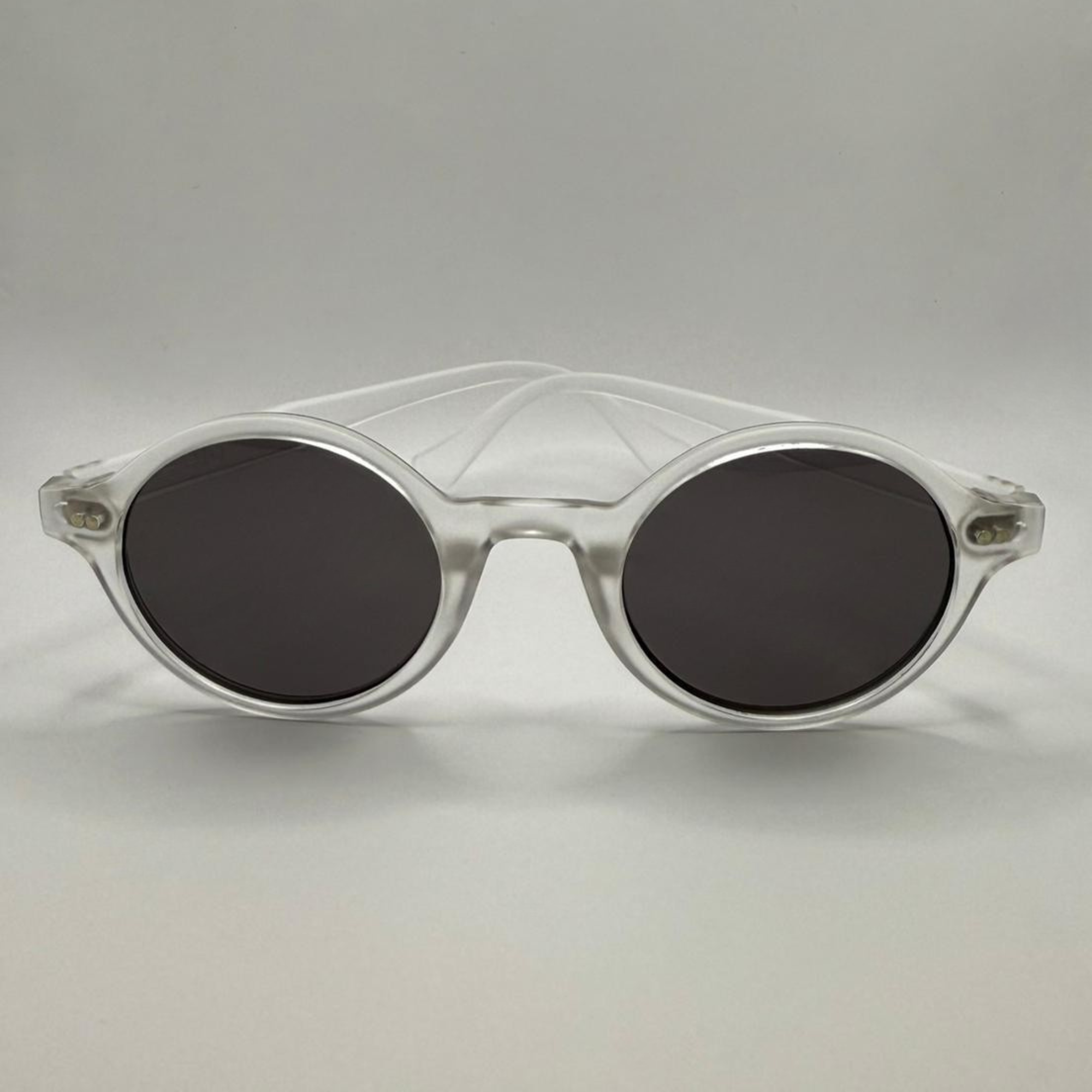 Rondes & intemporelles, pour voyager avec légèreté – Fabriquées en France (Occitanie) – Montures écoresponsables en plastique 100 % recyclé – Verres solaires, 2 couleurs au choix* – Vendues avec une pochette en feutrine & une lingette microfibre recyclées – En option : un étui en cuir recyclé *Verres polarisés Cat. 3, couleur gris ou brun, durcis et avec traitement antireflet