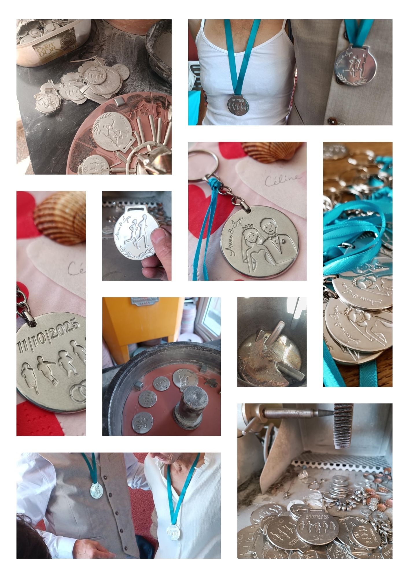 Médaille en étain sur mesure pour mariage, baptémes ou autres événements.