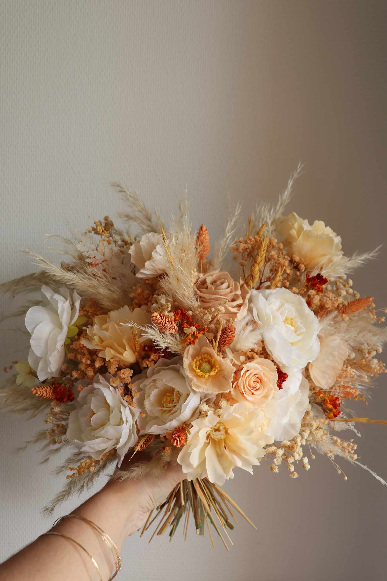 Chacun des packs est confectionné sur commande : précisez-moi la palette de couleurs souhaitée dans les commentaires lors de l’achat si vos coloris ne figurent pas dans le listing. Les photos sont des photos non contractuelle elle servent d’exemples de créations déjà réalisées, afin de vous donner un aperçu de la réalisation finale. Les créations en fleurs séchées de L’Esprit Sauvage, sont des modèles uniques, fabriqués à la main avec amour dans mon atelier à Toulouse. Optez pour des fleurs séchées, afin de conserver un souvenir de votre amour, elles viendront apporter une touche fleurie à votre mariage. Possibilité d’envoi partout en France et à l’International. Description du pack, il comprend : Un bouquet de mariée de la forme de votre choix / diamètre au choix vu de dessus, tiges non comprises Un peigne simple Une boutonnière pour le marié