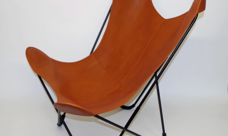 Fauteuil AA Butterfly Assise Cuir Couleur Pain Brulé
