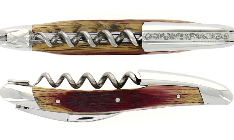 Couteau De Sommelier En Chêne De Barrique, Finition Brillante Avec Chape Sculptée Motif Pinot