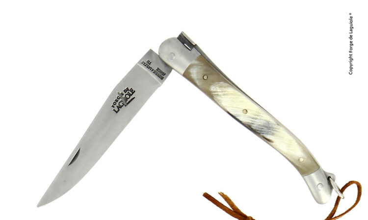 Couteau Pliant 11 Cm Manche Corne De Vache Aubrac, Mitres Inox Finition Satinée