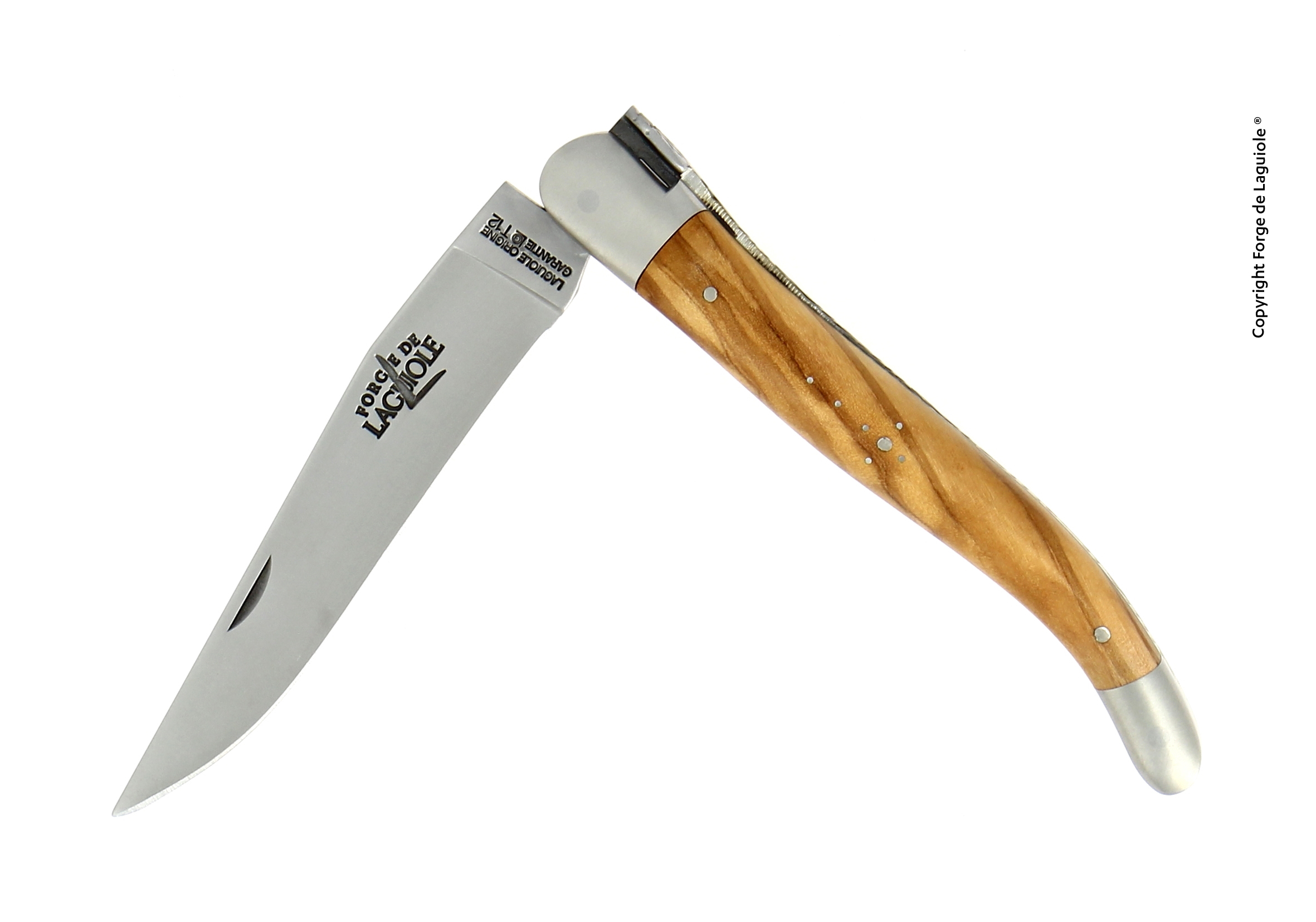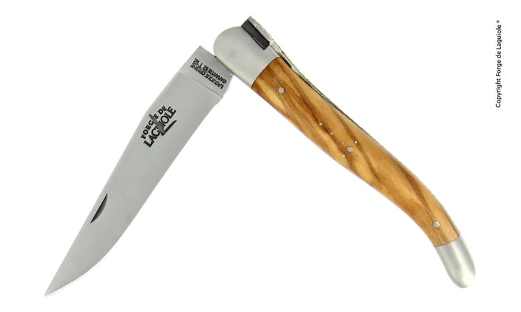 Couteau Laguiole 12 Cm Manche Olivier, Mitres Inox Finition Satinée