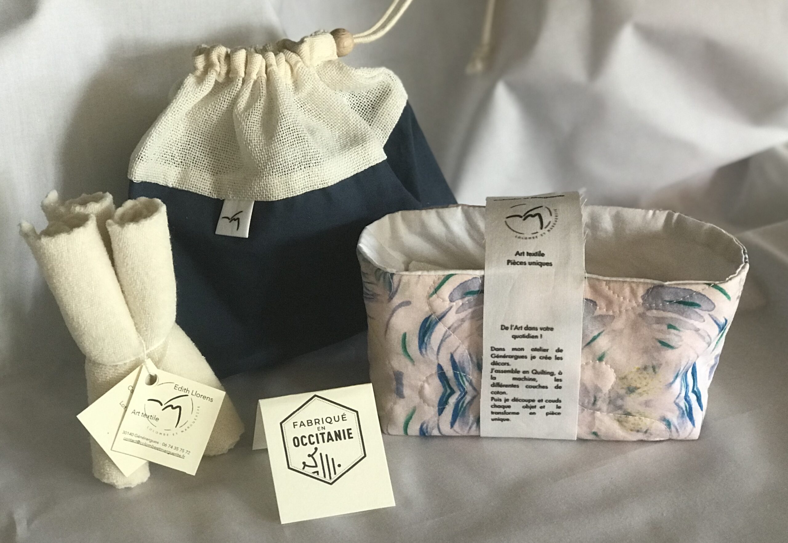 Colombe et Marguerite est une entreprise artisanale créée par Edith Llorens. Dans mon atelier je conçois les dessins et les fais imprimer sur coton bio français puis je crée les articles textiles. Chaque produit est fabriqué à Générargues (30140). Le matelassage est réalisé avec une machine à quilter sur un cadre de 3,5 mètres de long. Cette couture est particulière ; c’est la machine que je déplace pour assembler les différentes couches textiles. L’intérieur et l’extérieur du matelassé sont en coton bio français et lavable en machine. Une fois le tissus matelassé je le découpe pour le transformer en objets de décoration ou d’usage. Chaque pièce est unique. Si vous désirez voir ce travail, prenez rendez-vous, je serai ravie de vous accueillir. Ou visitez mon site internet.